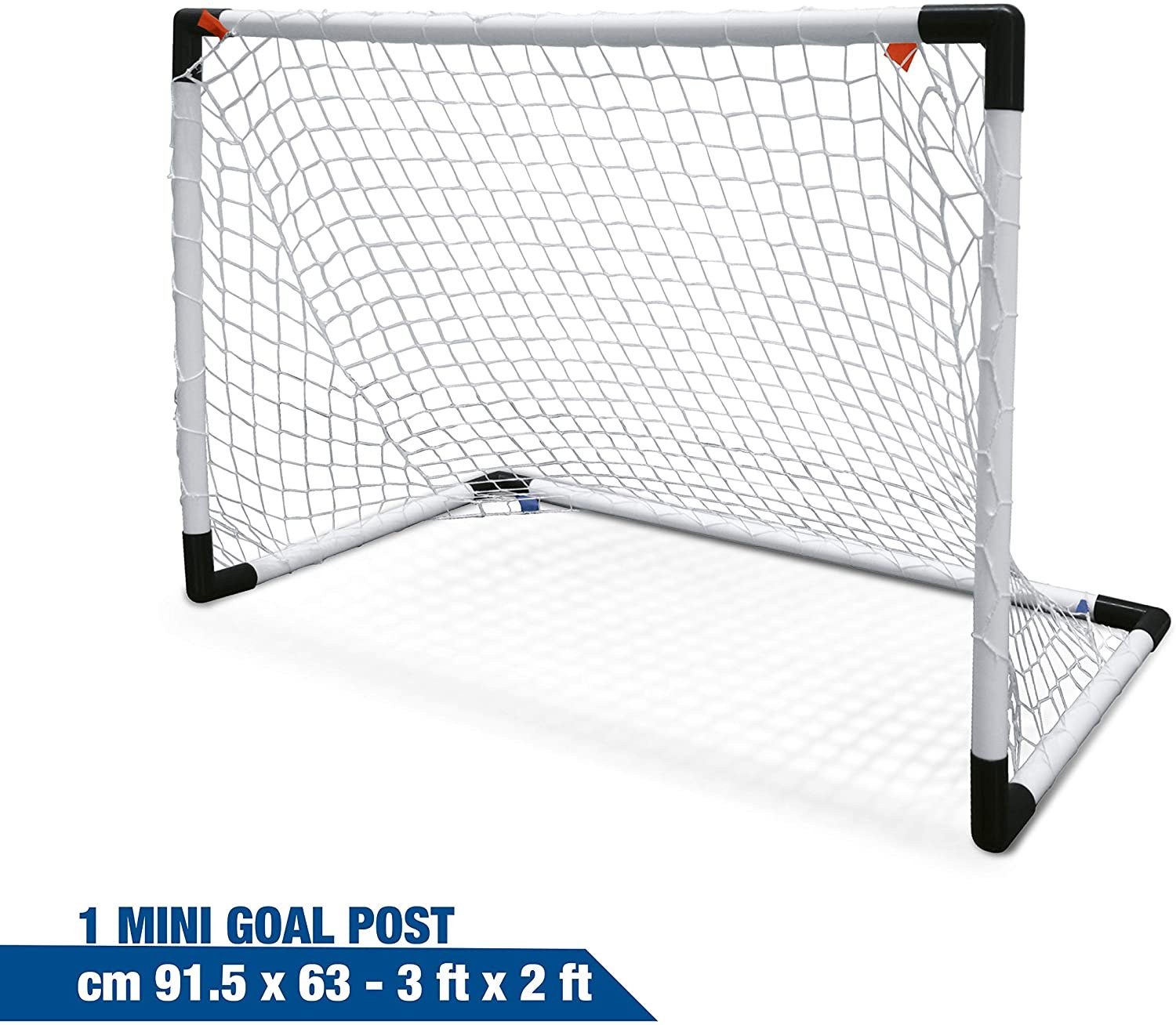 Set de 2 mini porterías de fútbol con balón. Perfectas para que los más peques jueguen sus primeros partidos de fútbol. Adecuadas para interior o exterior.Ayuda al desarrollo motriz del/la niño/a.Tamaño aprox. de las porterías: 91´5 x 63 cm
