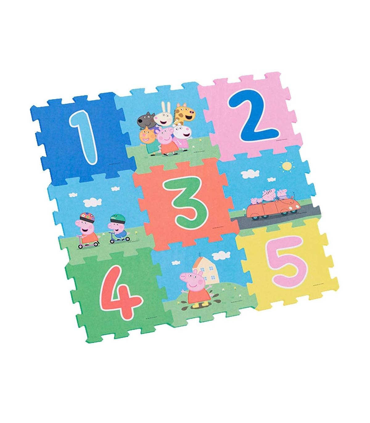 Divertidísima alfombra puzzle de foam con ilustraciones de Peppa Pig con sus amigos y familia.
