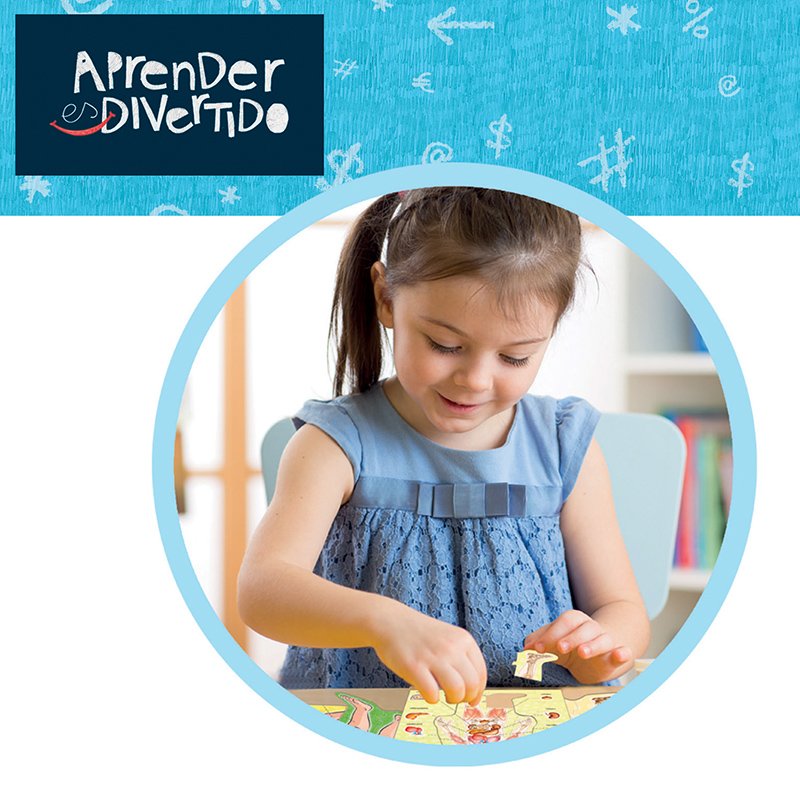 ´Aprender es Divertido´ es una colección de juegos especialmente creada para acompañar al niño/a en su proceso de crecimiento y aprendizaje, potenciando el desarrollo de sus capacidades, habilidades y personalidad. Con este divertido juego aprenderán las distintas partes del cuerpo humano. Sobre una silueta de niño o niña podrán encajar las principales partes del cuerpo, esqueleto y órganos. Contenido: 99 piezas para formar 4 puzzles (niño, niña, esqueleto y órganos), 1 marco con las partes del cuerpo, instrucciones.