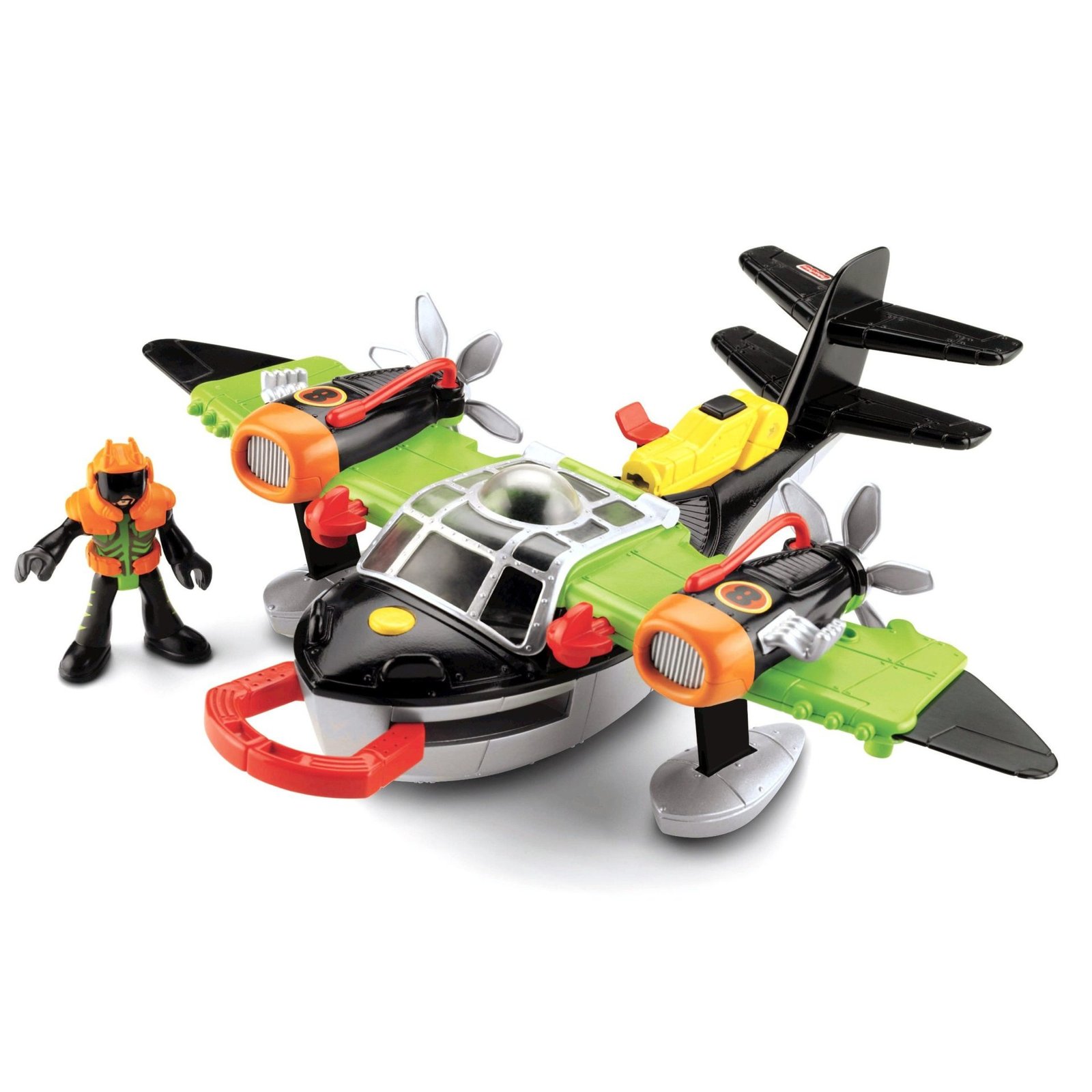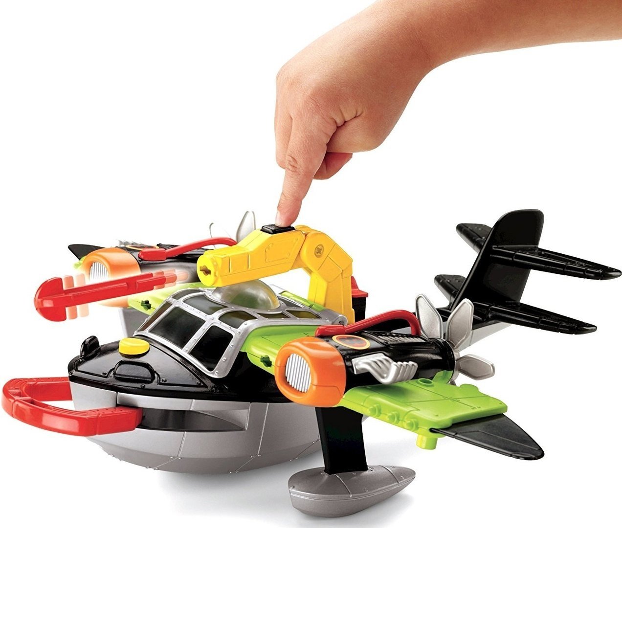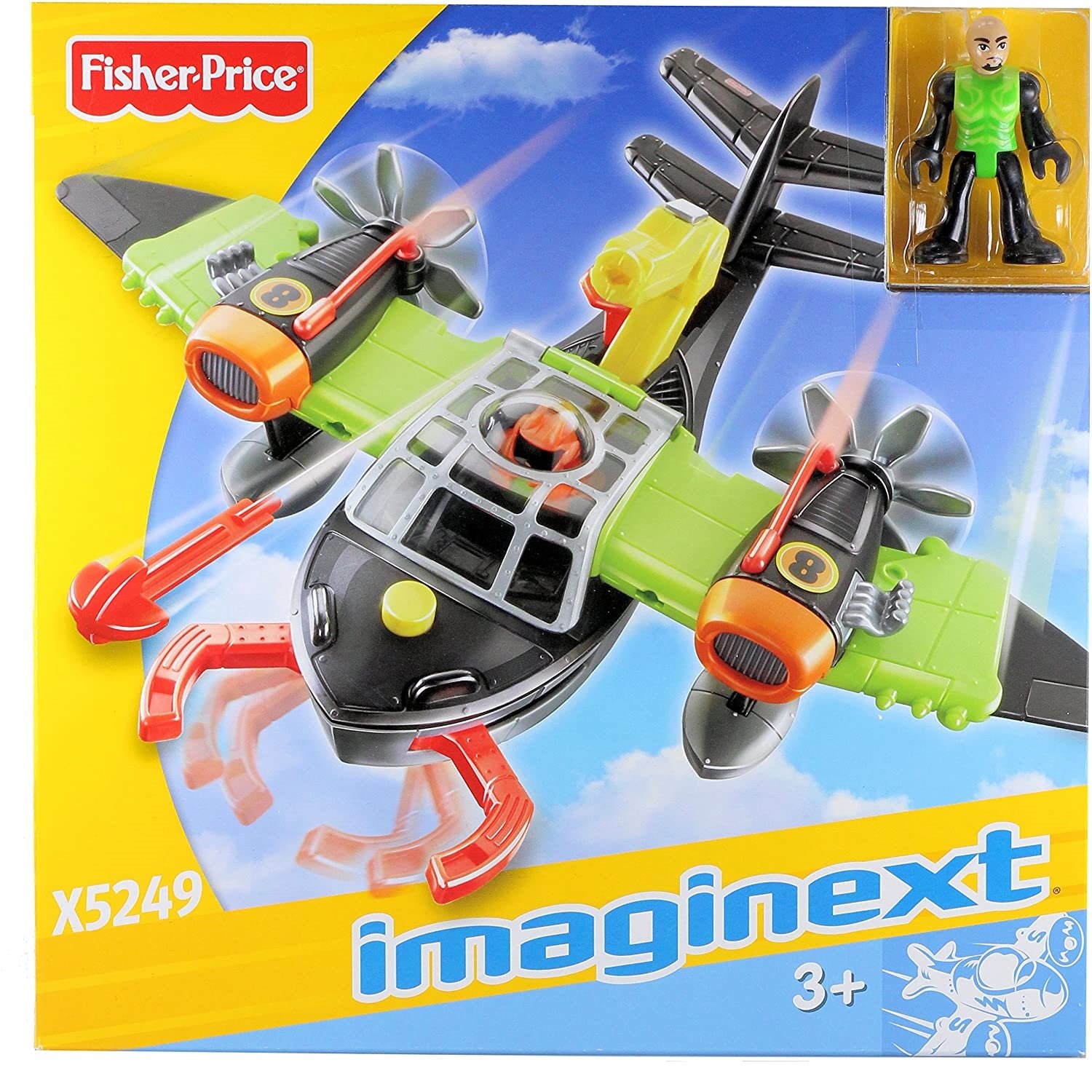 Avión de Imaginext que cuenta con lanza misil, garras frontales, alas extensibles y cabina con apertura para que puedas meter dentro a la figura del piloto incluida.