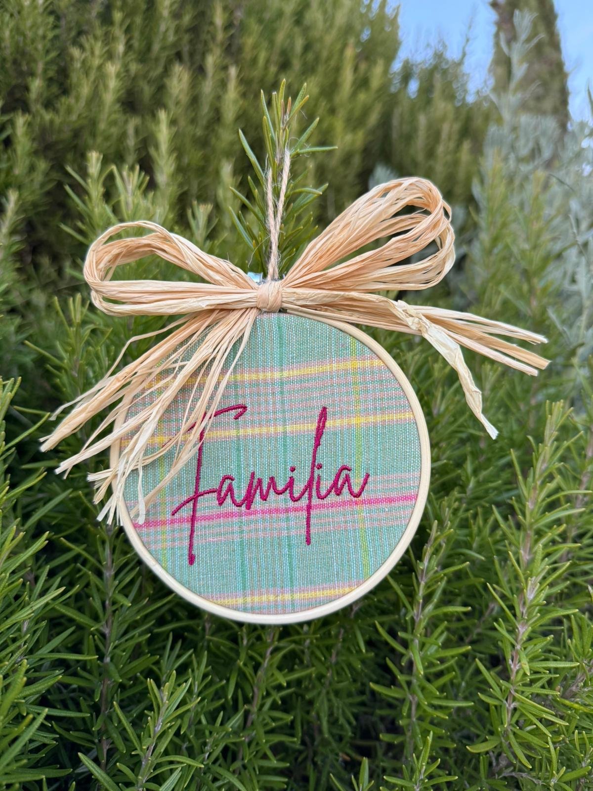 Es un artículo decorativo formado por un bastidor de madera de 10cm y rafia 100% natural.
