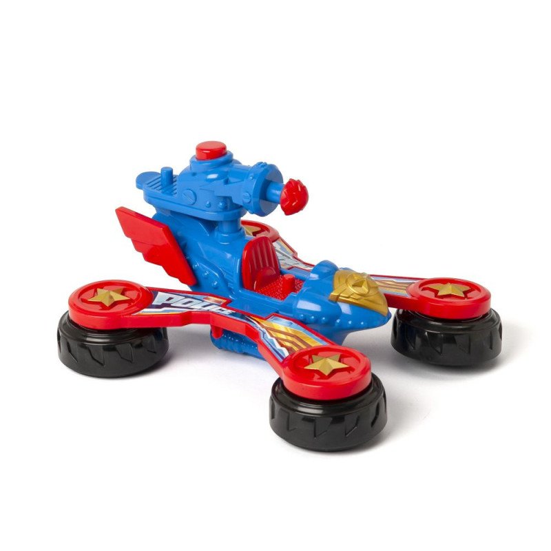 Este vehículo policial se transforma 🛻➡️🚁 en modo moto o modo dron, y dispara proyectiles para enfrentarse a los villanos.