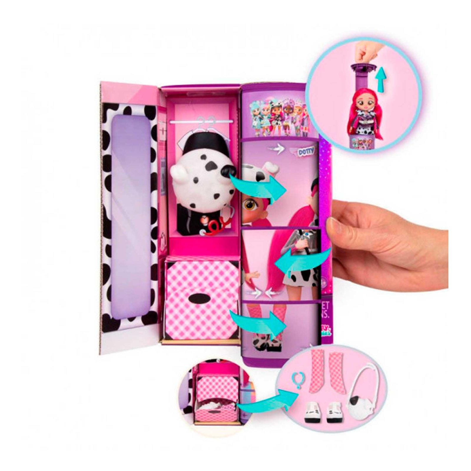 ¡Conoce a las nuevas Bebés Llorones BEST FRIENDS FOREVER Serie 1! Ahora tus bebés llorones favoritos han crecido y son adolescentes. Tienen 13 años y viven muchas aventuras juntas. ¡Gira el cilindro para descubrir tu BFF! Ella es Dotty, vestida con ropita de moda. Tiene el pelo largo de nailón, ojos de cristal y el cuerpo articulado. ¡Gira el cilindro para encontrarla! Abre el packaging y descubre su armario con más de 7 sorpresas: 2 prendas de ropa, un bolso, una diadema o un sombrero, unos zapatos a juego con calcetines o medias y un collar. Edad recomendada: + 3 años. No recomendable para menores de 3 años, ya que contiene piezas pequeñas que podrían provocar asfixia en caso de ser ingeridas por el niño/a.