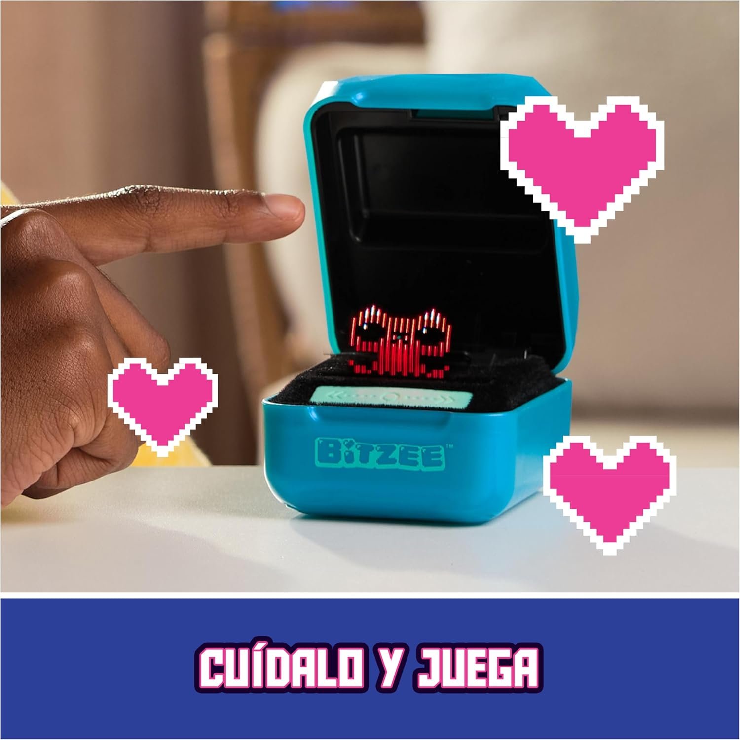 La mascota digital que puedes tocar directamente a través de un holograma. El nuevo Bitzee Magical, ahora tiene 20 nuevos fantásticos amigos digitales! Los Bitzee Magicals responden al tacto y movimientos. Cuida de tus nuevos amigos mágicos desde bebés y dales tu amor y cuidado para crecer ¡Cuanto más juegues, más Magicals desbloquearás! Aliméntalos y juega, acuéstalos para que se duerman, limpia lo que ensucian y dales amor. ¡Míralos crecer desde bebé hasta adulto y hasta convertirse en Super Bitzee! Cuando un amigo Bitzee raro o legendario se convierte en Super Bitzee, ¡se divide entre 1 de 2 posibles personajes Splitzee! ¡Juega juegos únicos con tus Magicals recolecta gemas para agregarlas a tu Cofre del Tesoro y atraer nuevos personajes! Además, hay más formas de jugar: ¡usa la varita mágica para lanzar hechizos y experimenta una transformación divertida y gana nuevas pociones para cambiar los colores de tus amigos.