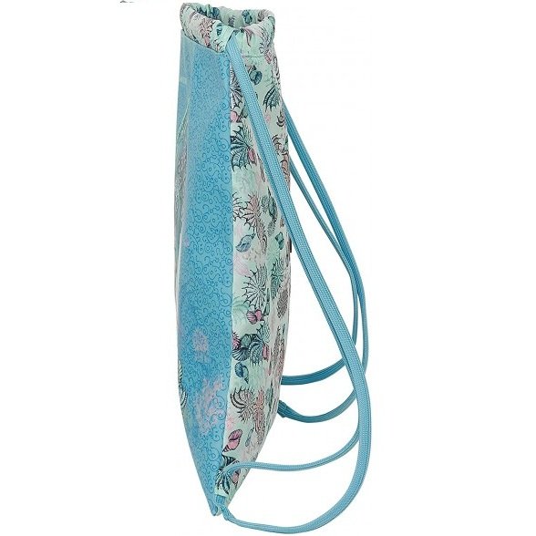 Saco mochila con cierre de cordones, que permiten llevarla colgada a la espalda como una mochila o al hombro.