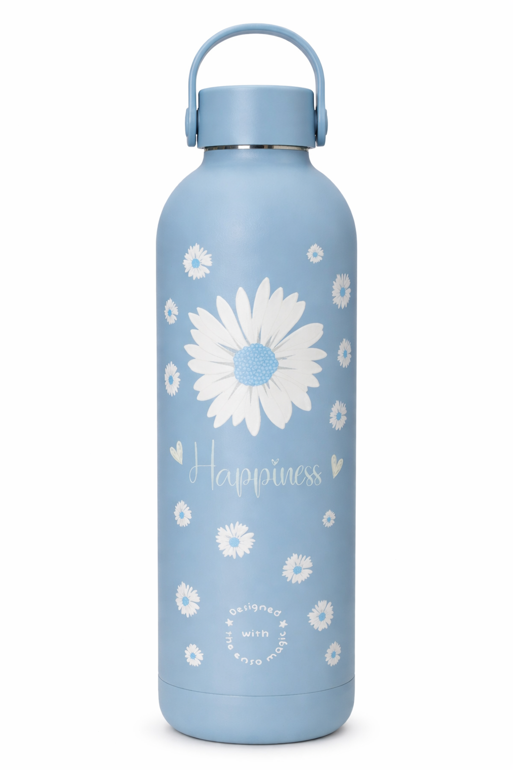 Llena tu día de buenas vibras con la botella térmica ensō Happiness 🌈✨. Un diseño delicado con flores tipo margarita y mensaje positivo que te acompaña tanto en el trabajo 💼 como en tu tiempo libre 🌿.