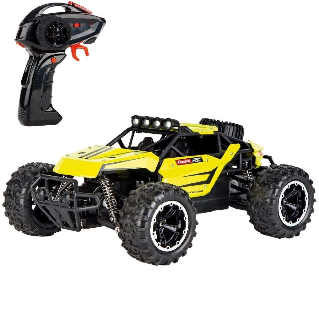 Passion impact con el acelerador a tope es un elegante buggy con tracción a las cuatro ruedas que lo convierte en un verdadero profesional del terreno, con capacidad para correr hasta 20 km/h en cualquier superficie. Con el modelo de 29 cm de largo, los pequeños aficionados al aire libre de más de 6 años exploran todos los terrenos. Gracias al sistema de control full function, diseñado para principiantes, se puede girar fácilmente en cualquier esquina. Posee una batería lifepo4 de 6,4 v – 900 mah con duración de hasta 20 minutos de circulación.