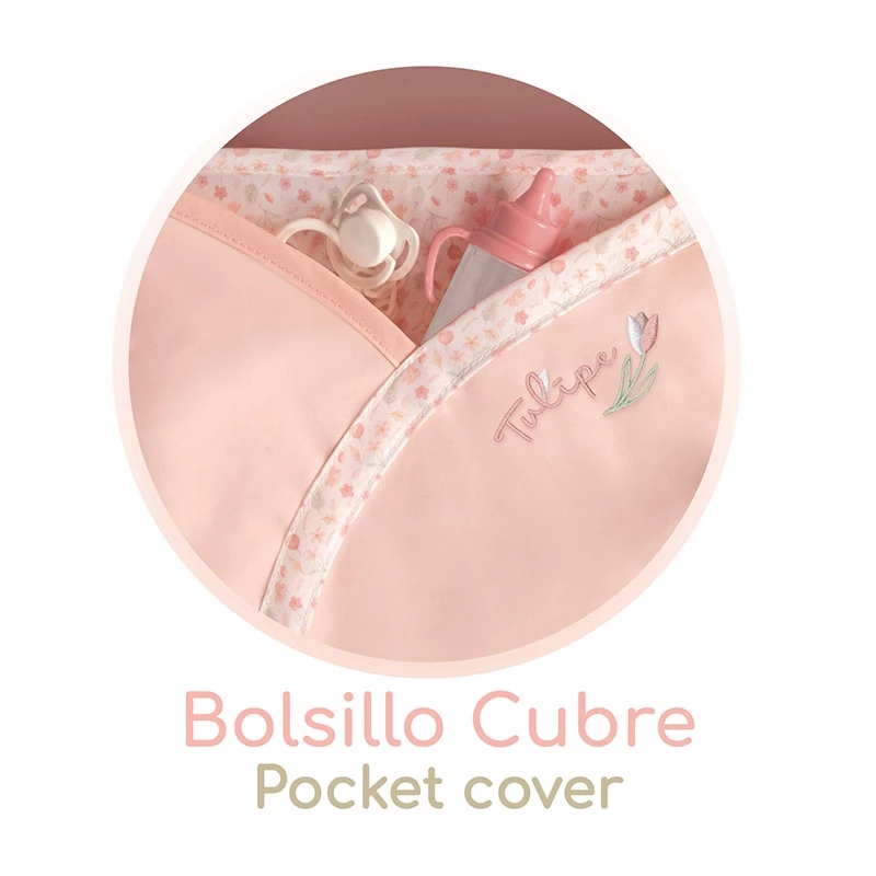 🔔 Bolsillo con sonajero en forma de tulipán (¡detalle adorable!).