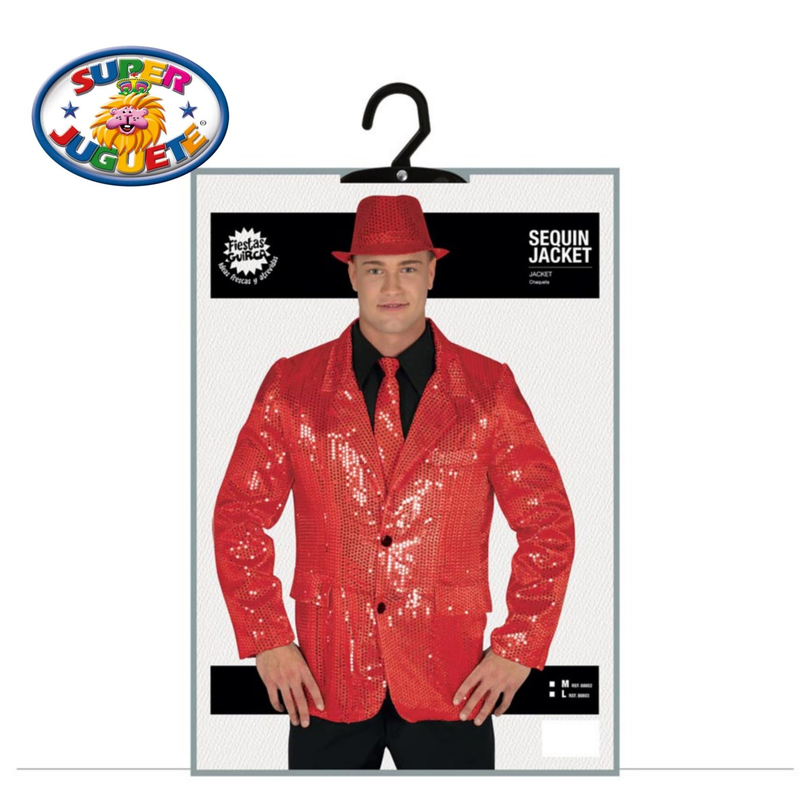 Chaqueta roja de lentejuelas para disfraz adulto. Ideal para fiestas, carnaval y eventos temáticos. Diseño brillante, cómodo y llamativo. No necesita pilas.