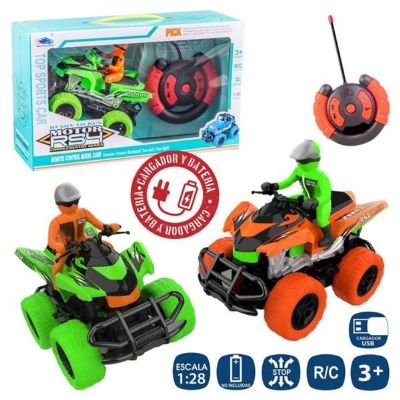 Quad radio control con estaca 1:26 . Función multidireccional. Funciona con pilas recargables incluidas. Incluye cargador. Mando RC Funciona con 2 pilas AA (no incluidas). Colores Surtidos. Se enviarán aleatoriamente según disponibilidad en almacén.