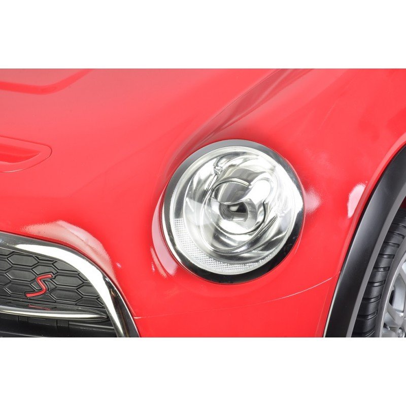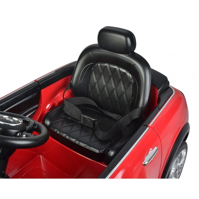 Vehiculo de bateria Mini cabrio de 12 v. 7ah. Radio control cargador de 12v. Puertas figuradas Medidas 110x62x51cm. El coche mini cabrio tiene una velocidad de 3,5 -4 km/h, tres modos de velocidad, luces y sonidos, con conexión mp3, cuatro funciones de movimiento adelante, atrás, izquierda y derecha. Función radio control para padres con cinturón de seguridad.
