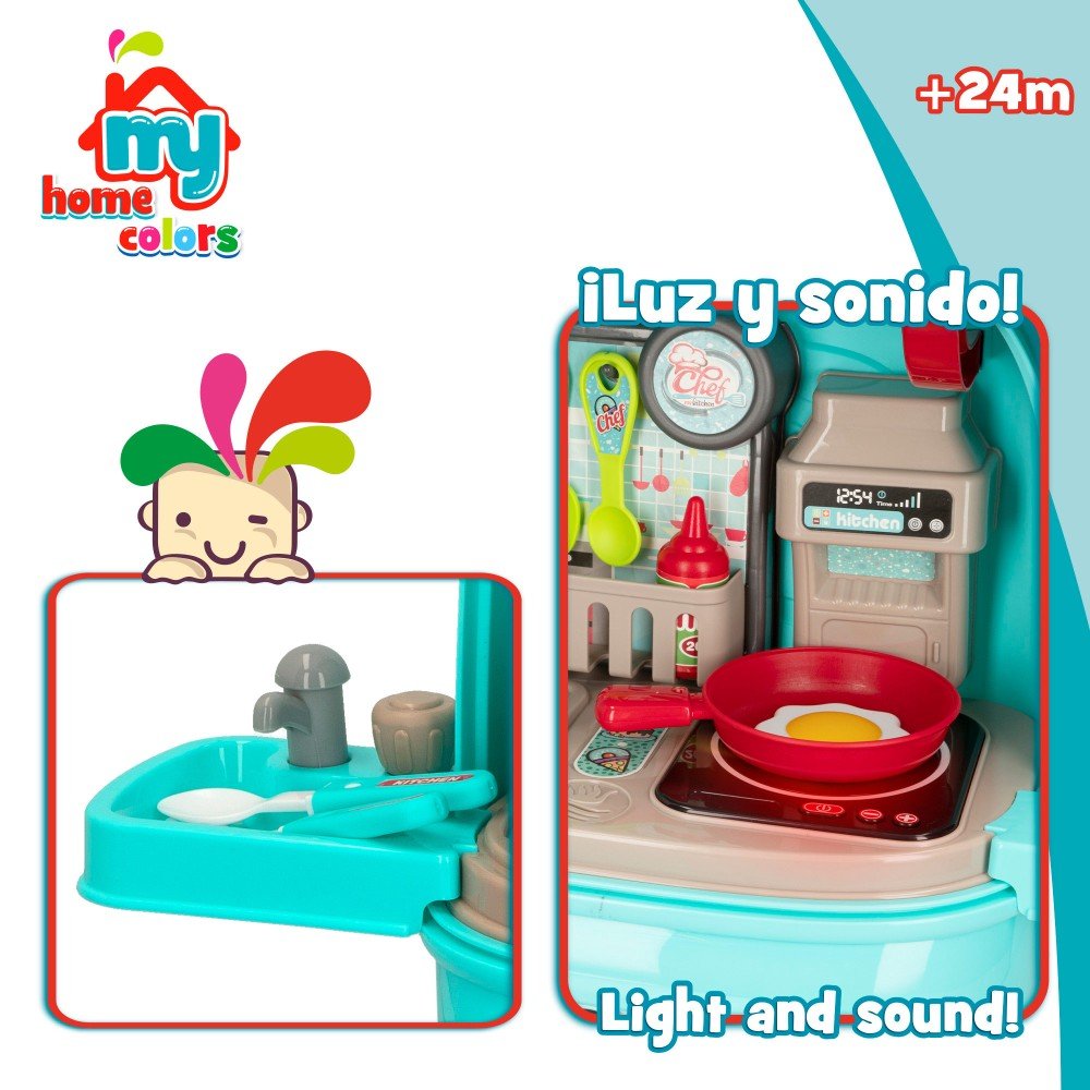 Cocina de juguete portátil 2 en 1 c/luz y sonido My Home Colors