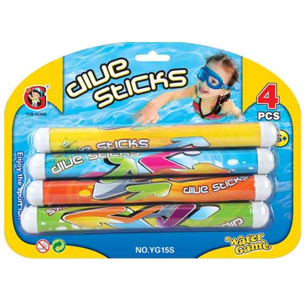 Conjunto de 4 palos sumergibles infantiles para jugar a buscarlos en el fondo del agua.