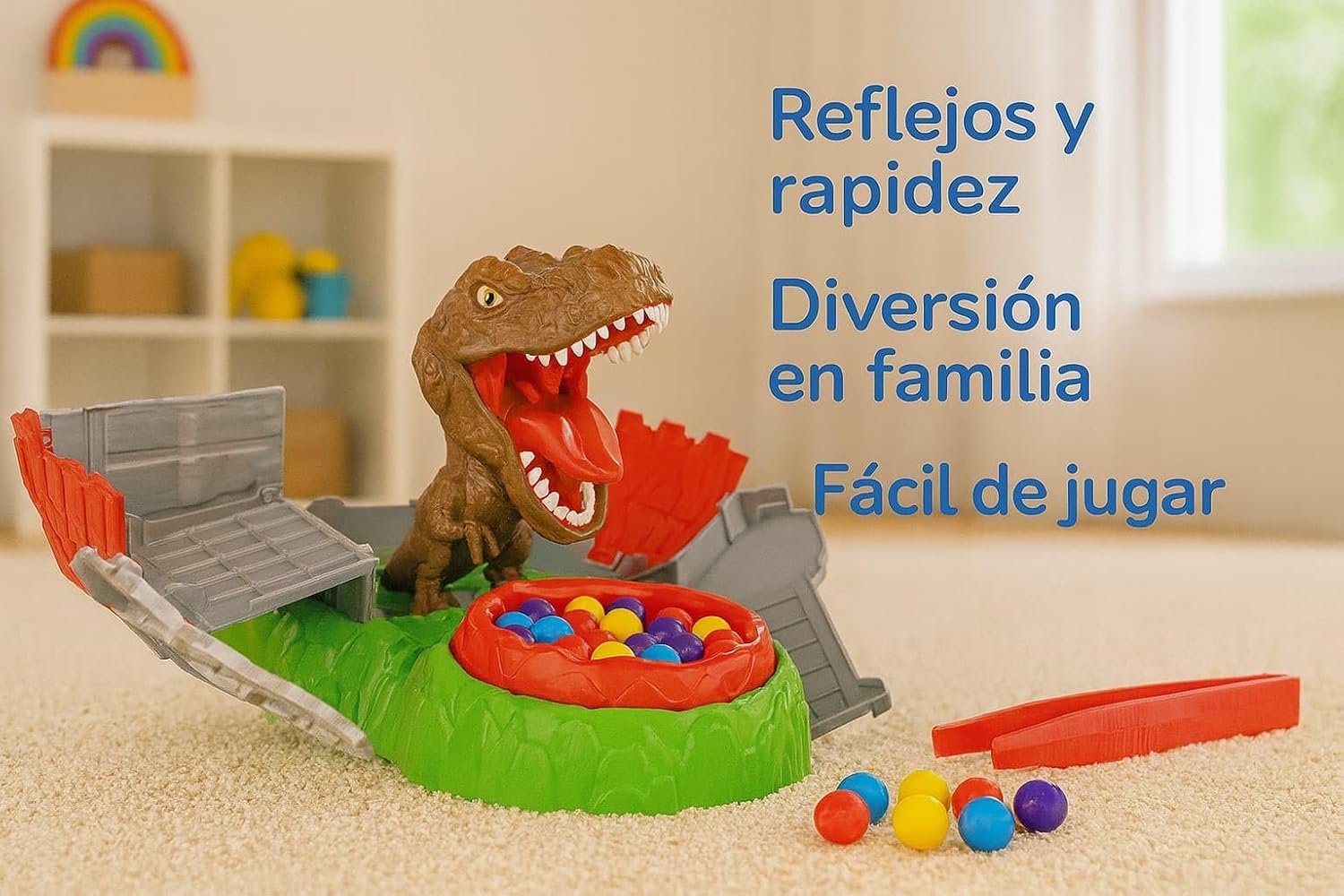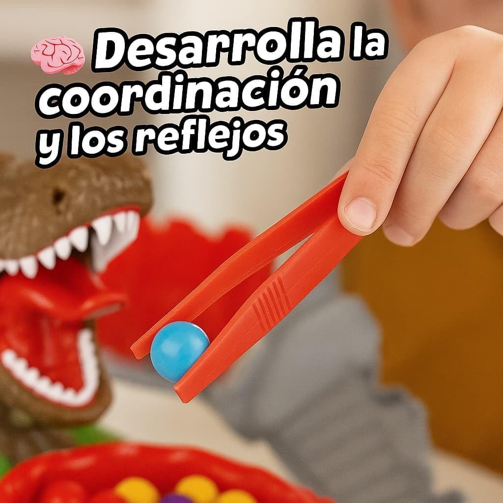 El Juego “Roba Bolas al T-Rex” pone a prueba tus reflejos mientras intentas robar las bolas de colores usando las pinzas… ¡antes de que el T-Rex ataque! 😱🫣
