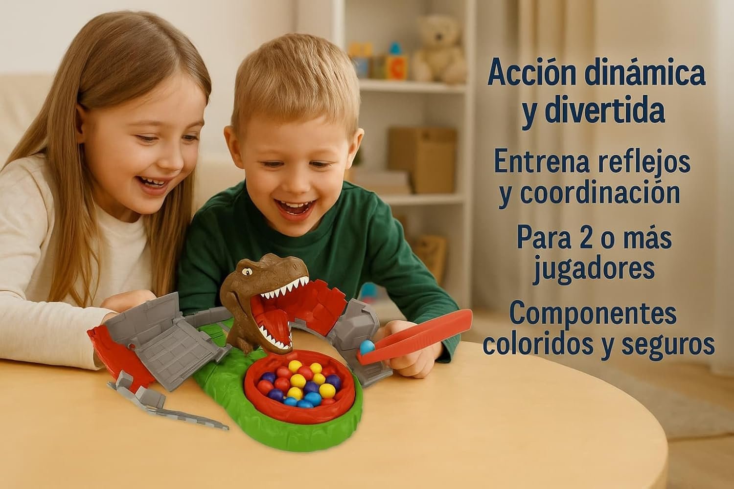 • 🦖 T-Rex sorpresa: su boca se activa cuando menos lo esperas, creando momentos súper divertidos.