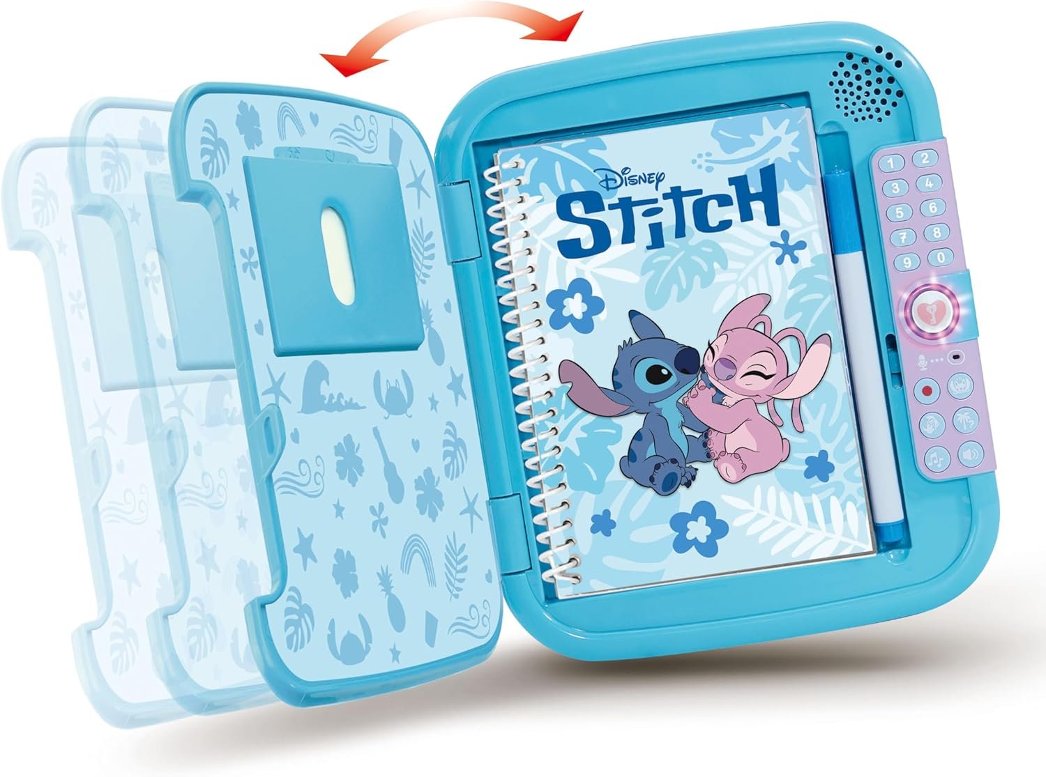 El Diario Secreto Digital Stitch – Kidi Secrets de VTech es el rincón perfecto para que peques a partir de 5 años escriban, graben y protejan sus pensamientos más importantes… ¡con una contraseña secreta de 4 dígitos que solo ellxs conocen! 🥰🔢