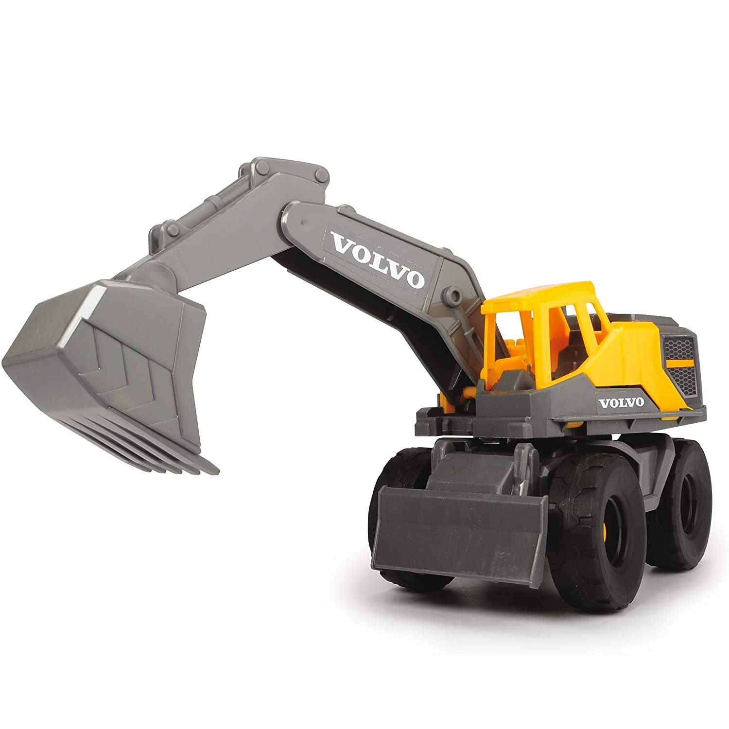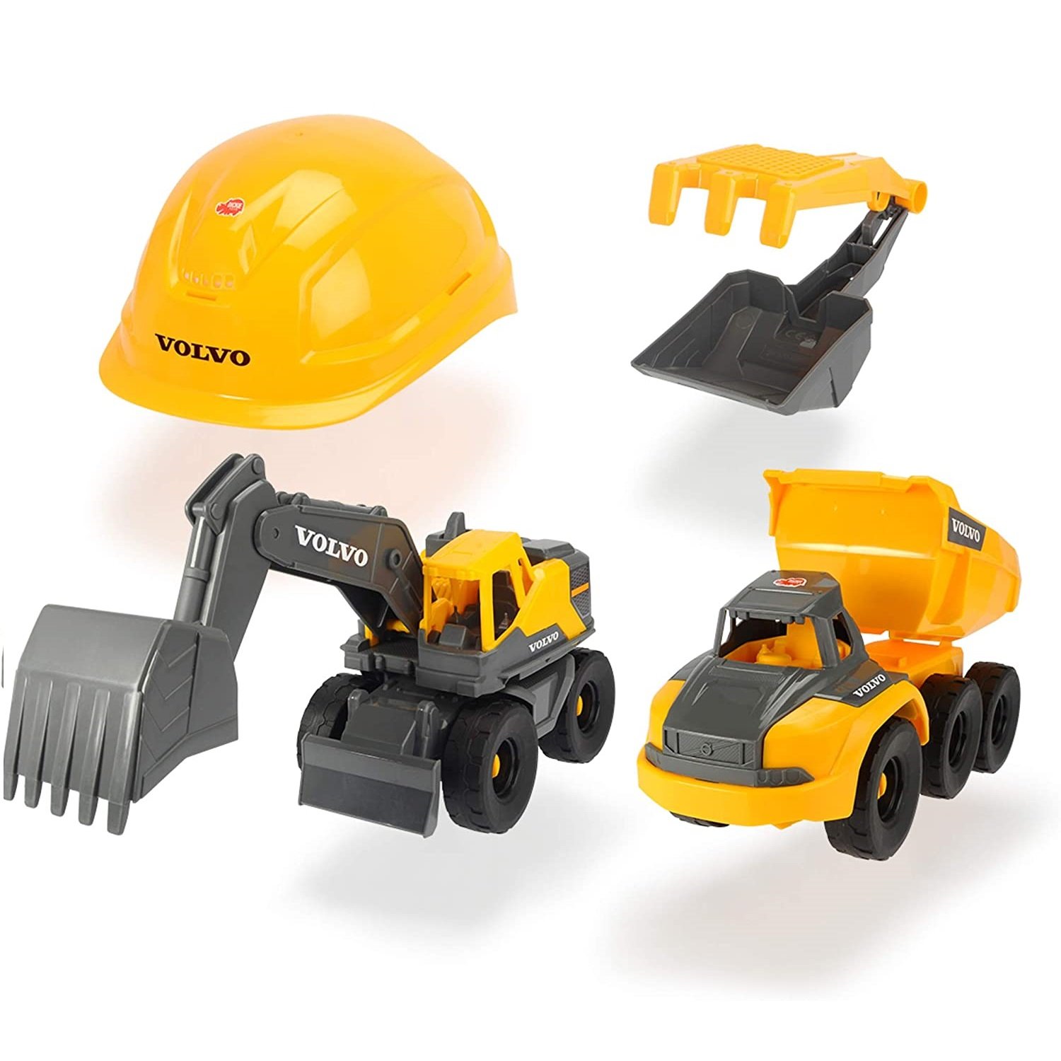 Este set de construcción de juguetes de Dickie Toys es la perfecta introducción al mundo de las obras y la construcción. Incluye dos vehículos Volvo con ruedas giratorias, un casco de construcción, y utensilios para la arena: pala y rastrillo-tamiz. El vehículo camión de carga cuenta con un eje móvil articulado detrás de la cabina del conductor, así como una superficie de carga ajustable. La retro excavadora es muy ligera, e incorpora un brazo y una pala móviles. El conjunto también incluye un casco de constructor, que puede ser ajustado a una circunferencia de cabeza de entre 44 y 57 cm. La pala y el rastrillo-tamiz pueden separarse uno del otro y utilizarse en un arenero. Medida de los vehículos: 26 cm. A partir de 3 años.