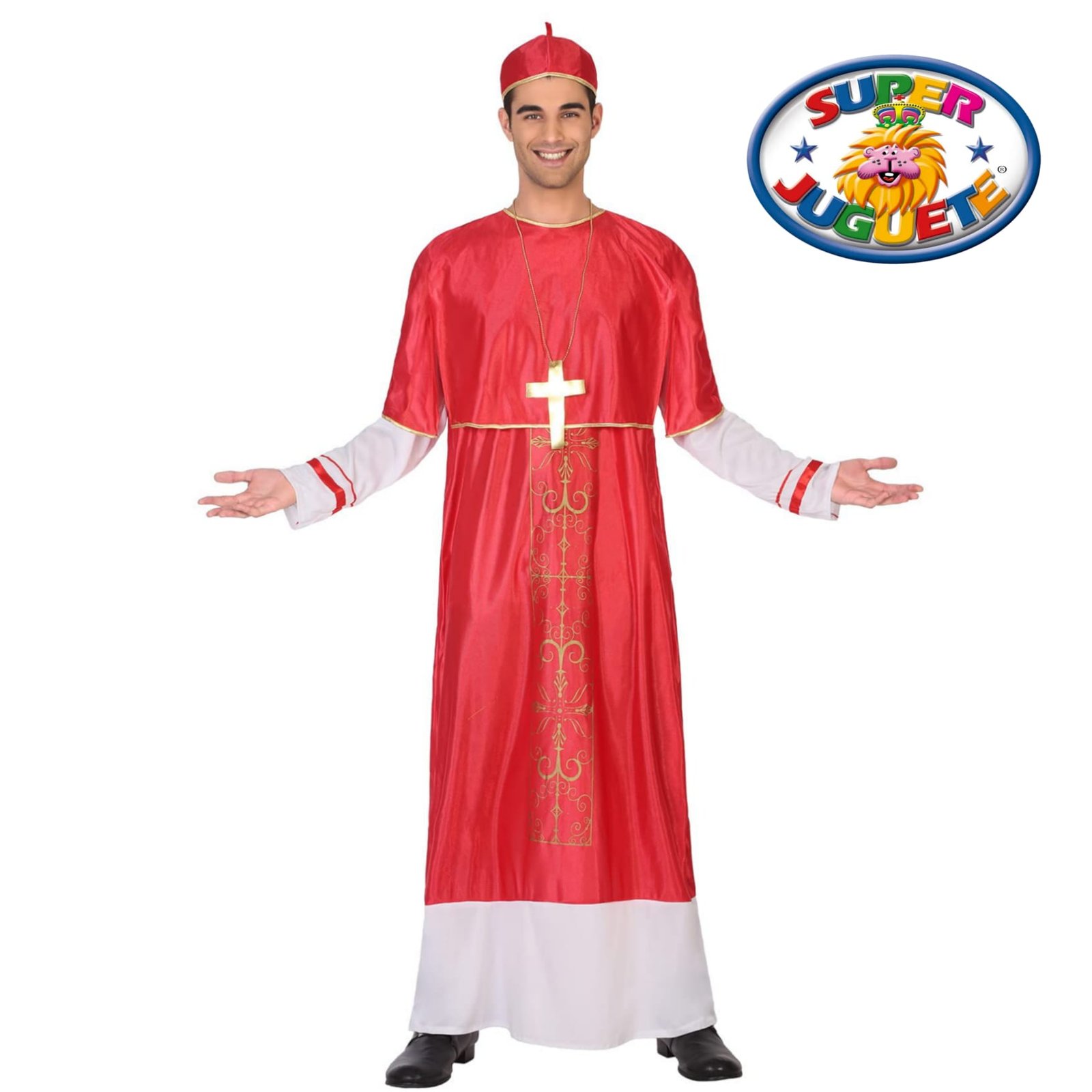Disfraz de cardenal para adulto con túnica roja, gorro y cruz. Ideal para carnaval, Halloween y fiestas temáticas. No necesita pilas.