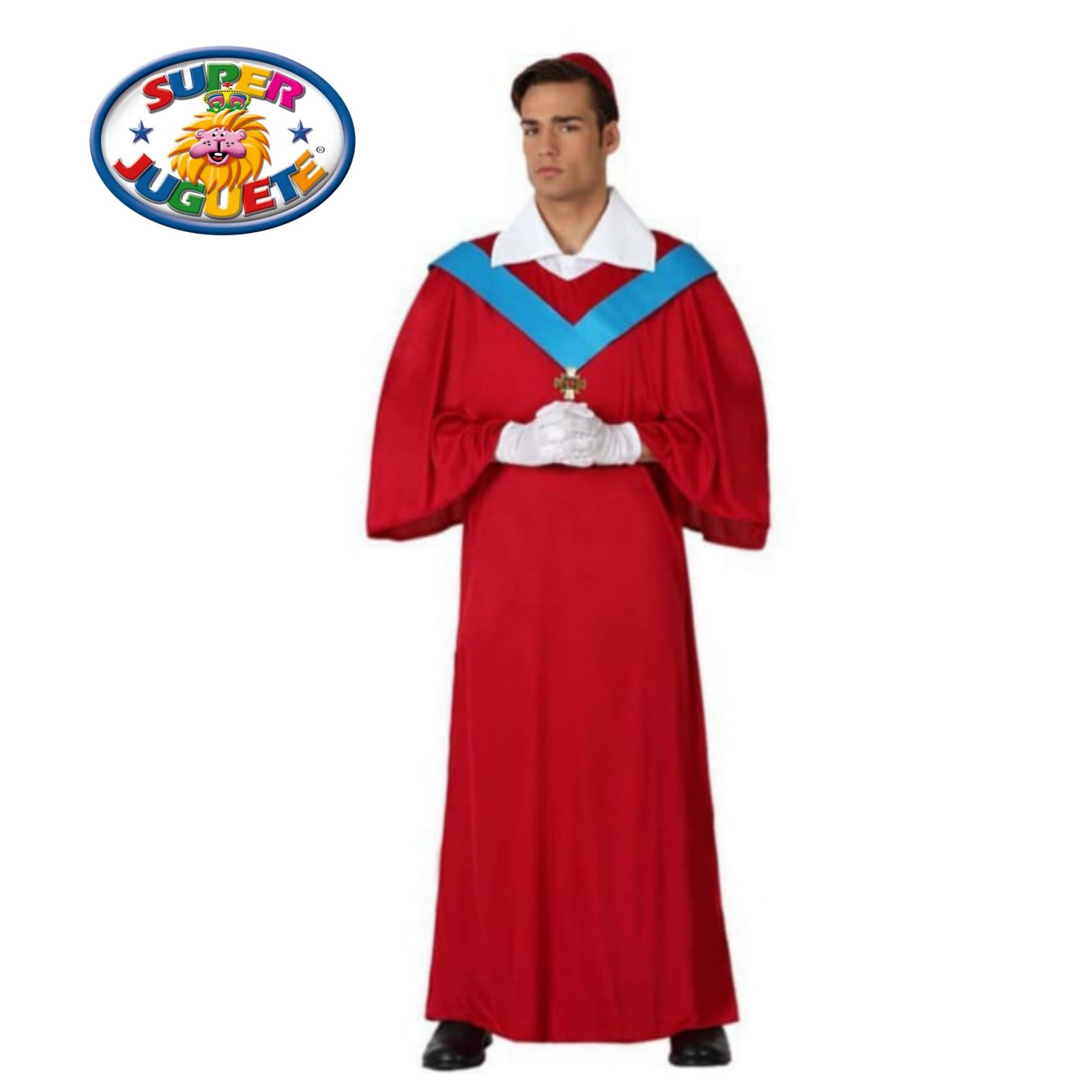 Disfraz de cardenal rojo para adulto con túnica, capa, estola azul, cruz y guantes. Cómodo y elegante para Carnaval, Halloween y fiestas temáticas. No necesita pilas.