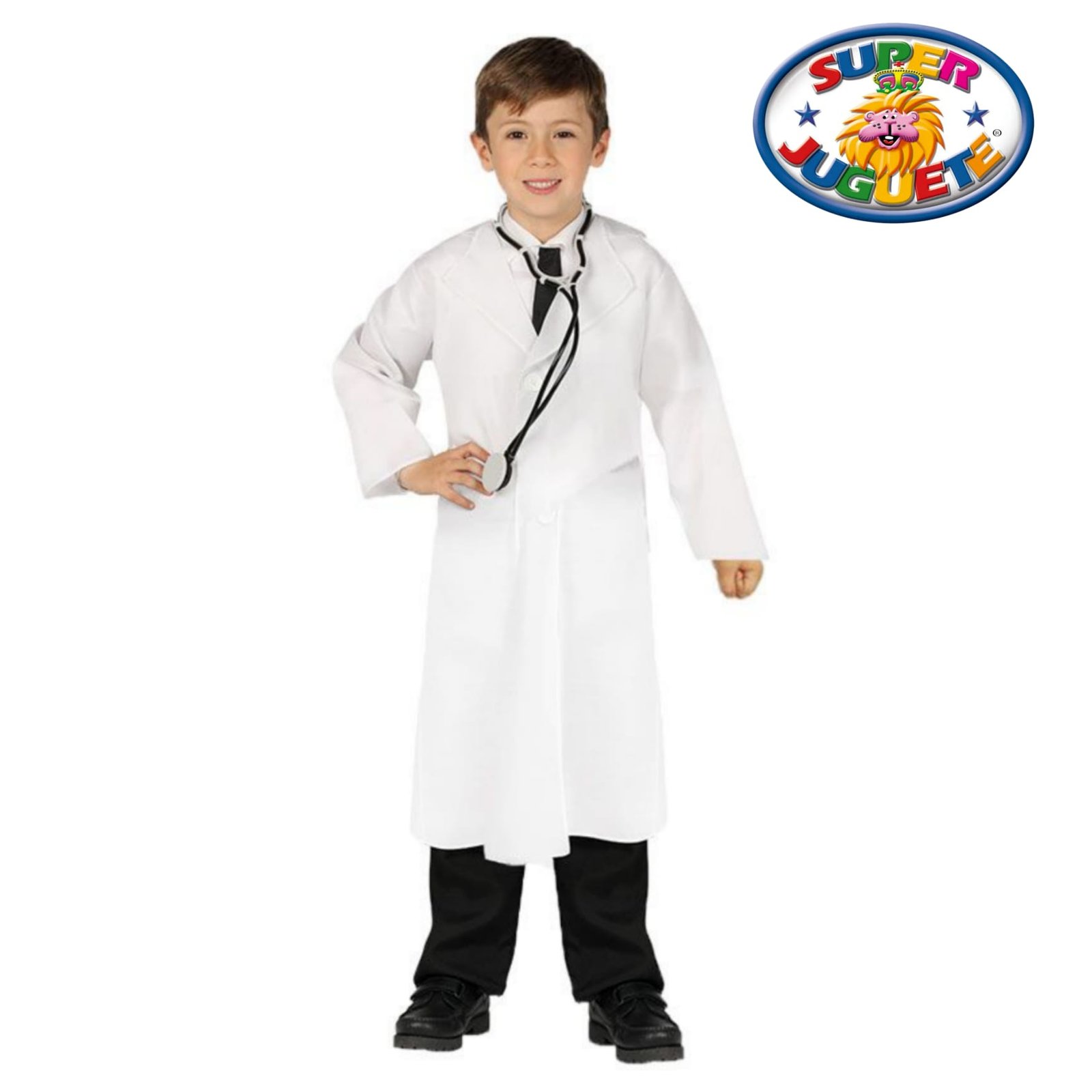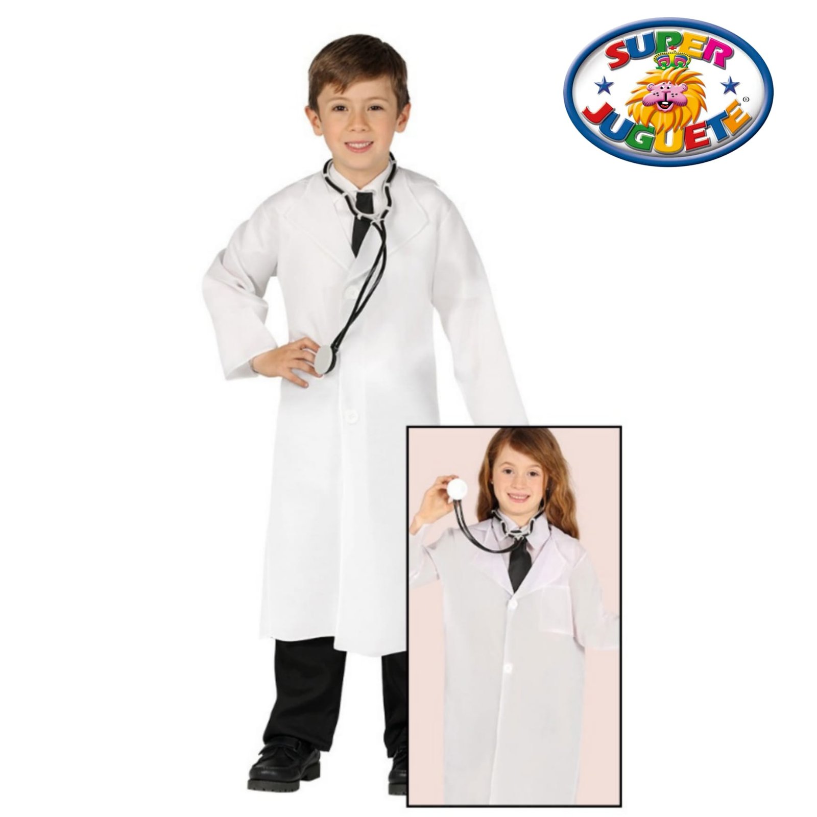 Disfraz infantil de médico con bata blanca y estetoscopio. Ideal para Carnaval, Halloween y juegos educativos de doctor.