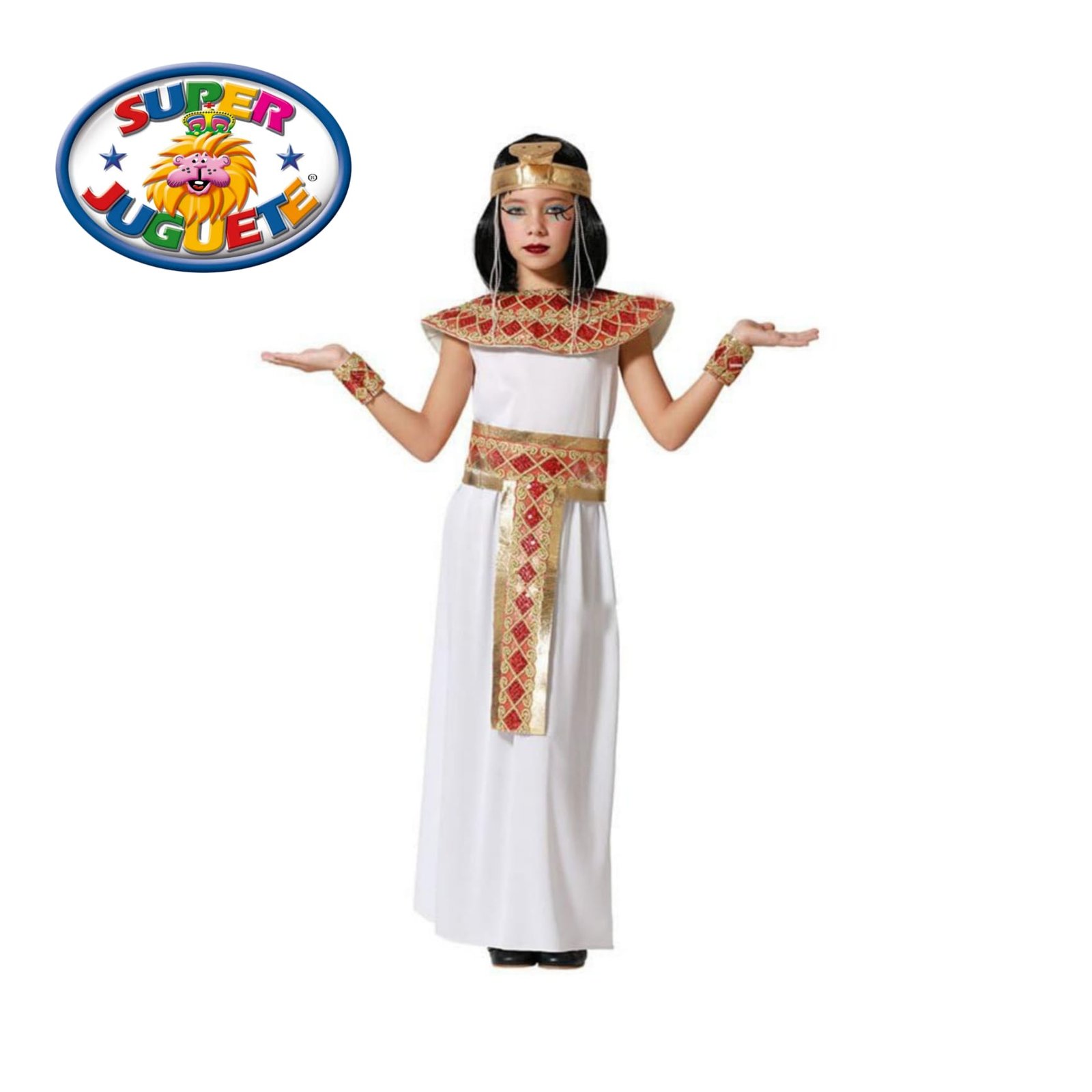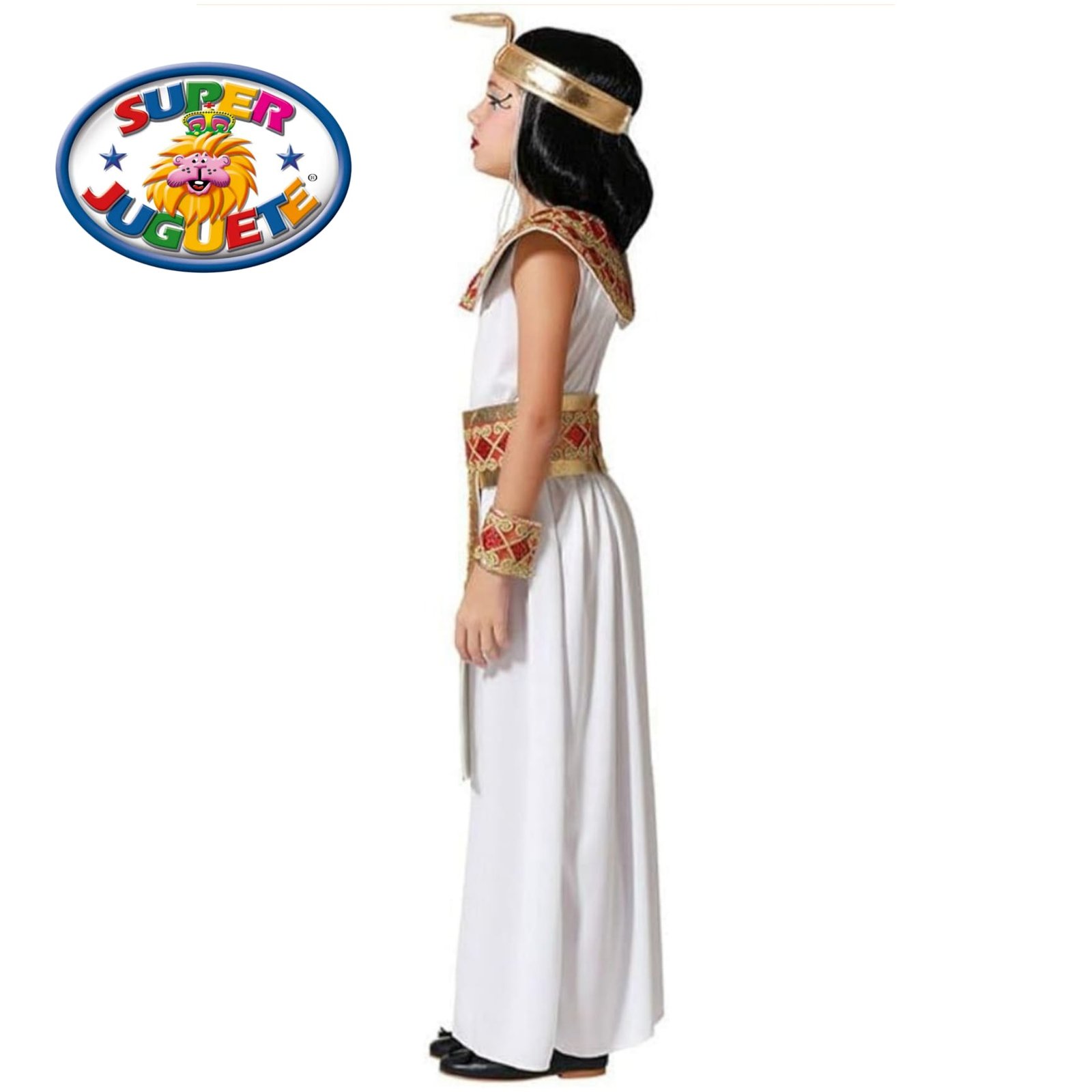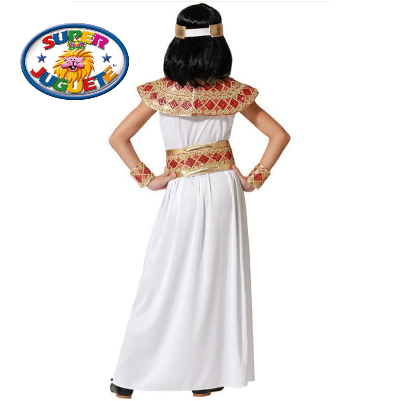 Disfraz de reina egipcia infantil con vestido largo y accesorios. Ideal para Carnaval, Halloween y fiestas temáticas. No necesita pilas.