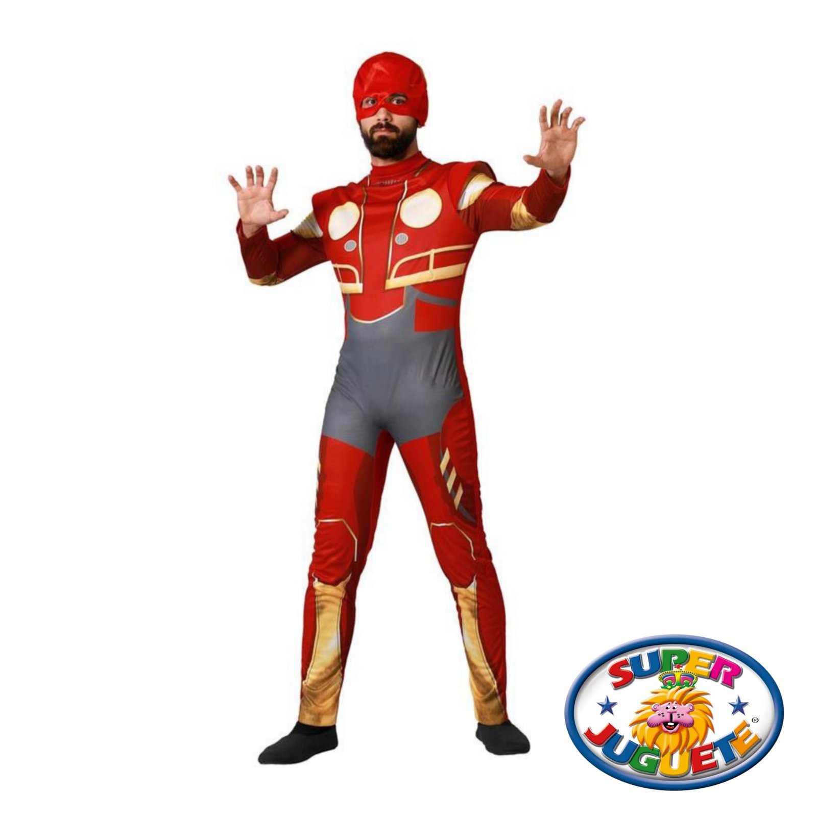 Con este disfraz de superhéroe tecnológico, te transformarás en un héroe de alta potencia con armadura roja y dorada, listo para enfrentar villanos, posar para fotos épicas y repartir sonrisas por donde pases 😄💥.