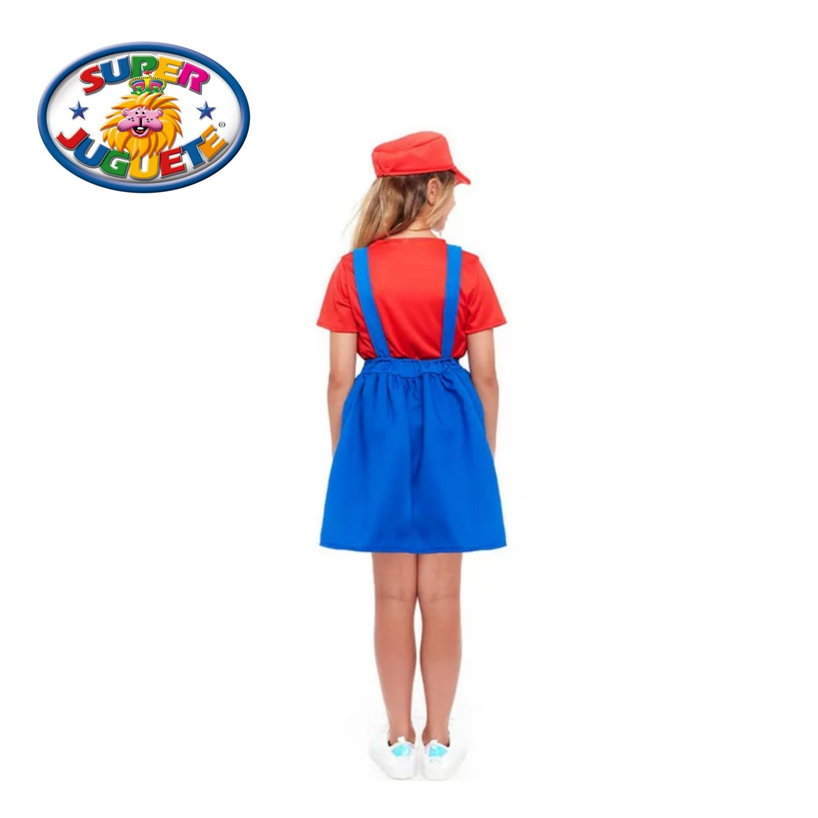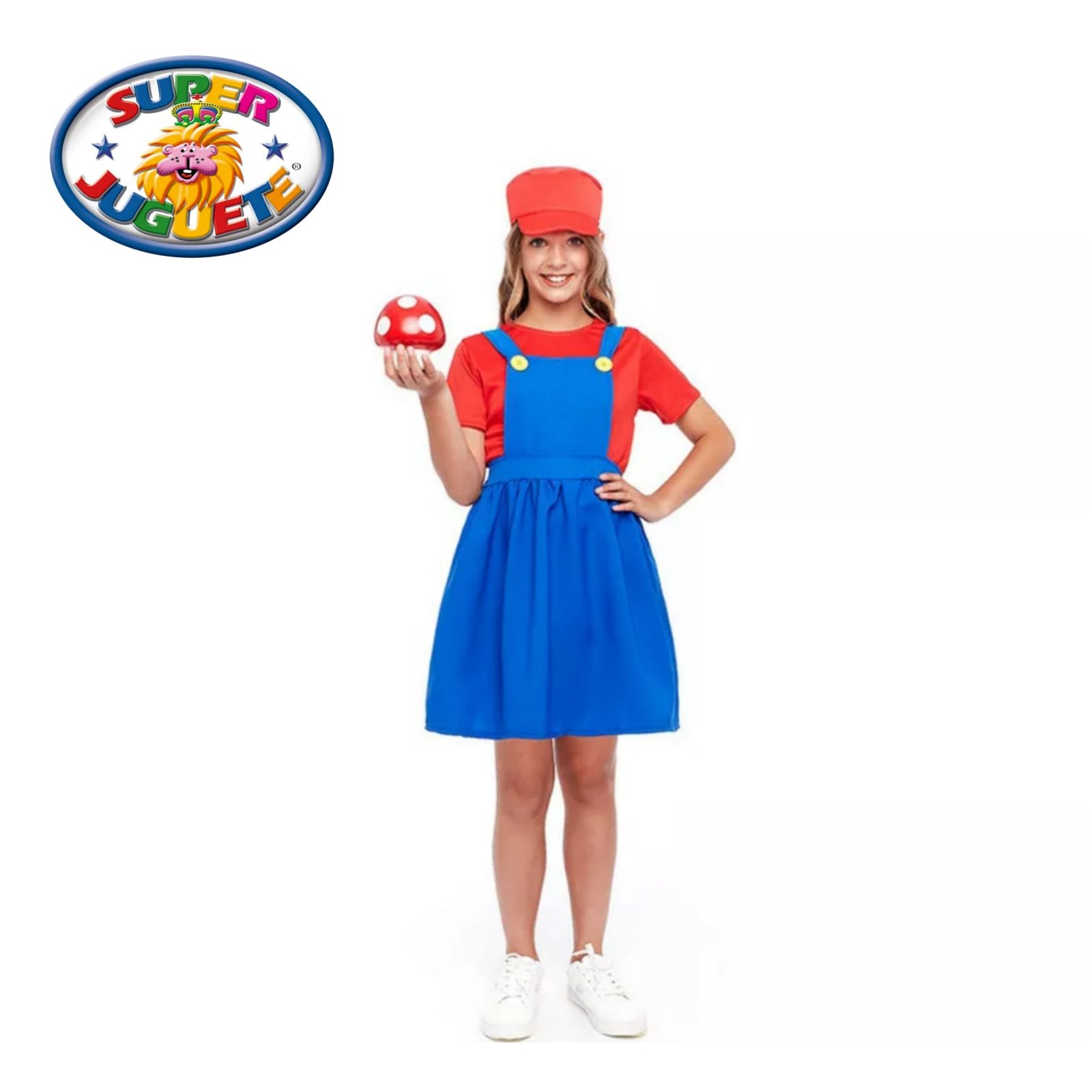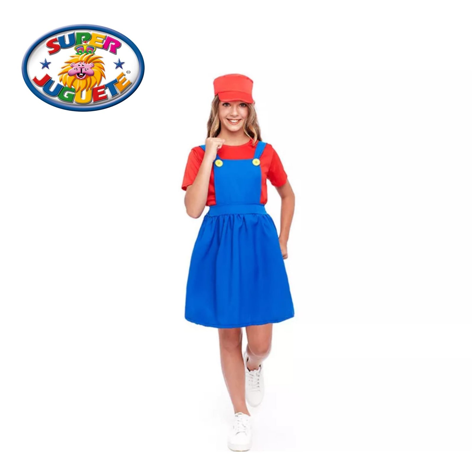 Incluye un vestido azul con tirantes, camiseta roja y gorra a juego, creando un look reconocible, cómodo y lleno de energía gamer 🎮⭐. Ideal para Carnaval, fiestas de disfraces, cumpleaños temáticos o simplemente para jugar a salvar mundos imaginarios en casa 🏰✨.
