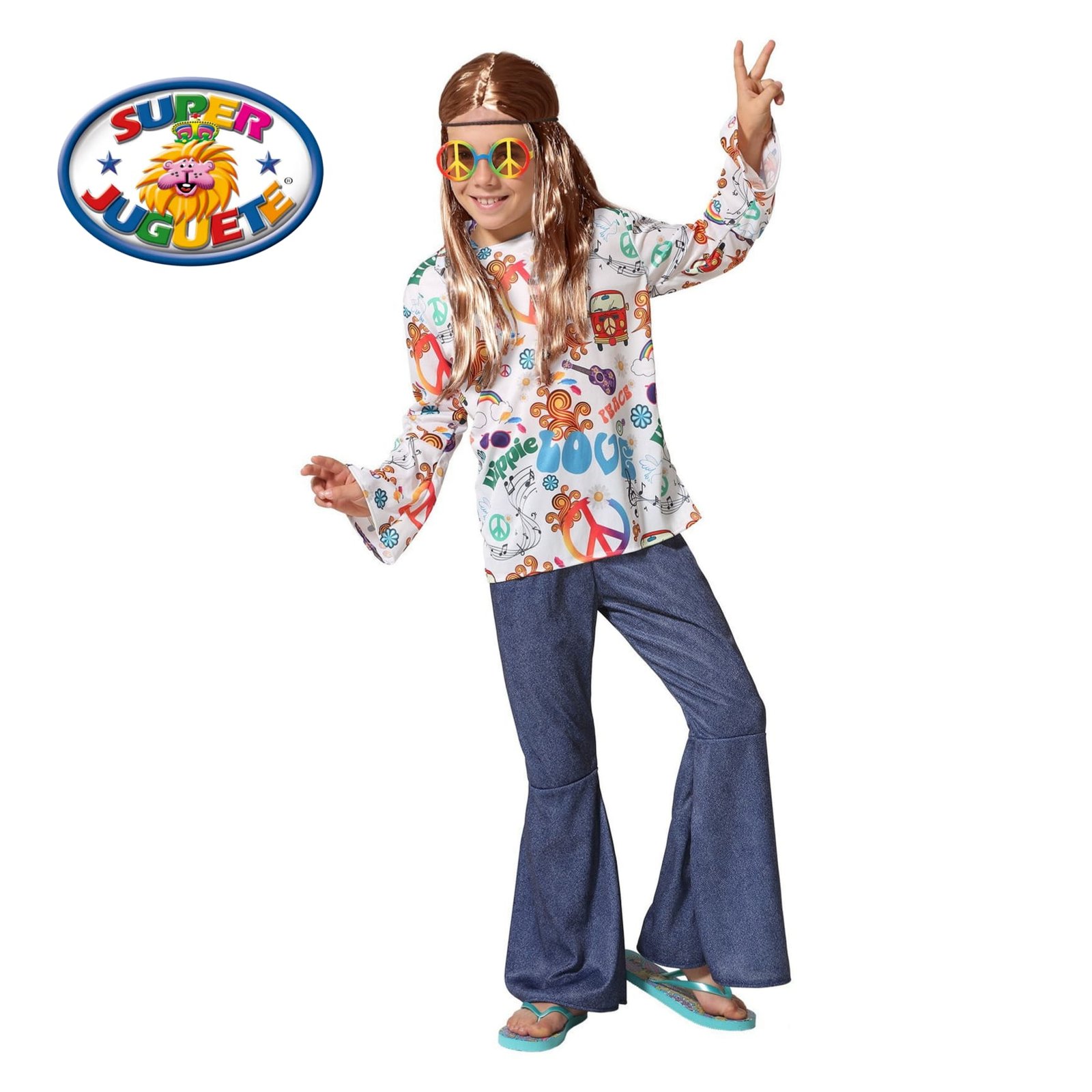 Este disfraz hippie infantil es perfecto para peques con espíritu libre que quieren brillar en carnaval, fiestas temáticas o festivales escolares. Inspirado en los años 70, combina colores vibrantes, estampados psicodélicos y un estilo cómodo que invita a bailar, sonreír y repartir buenas vibras 🕺✨