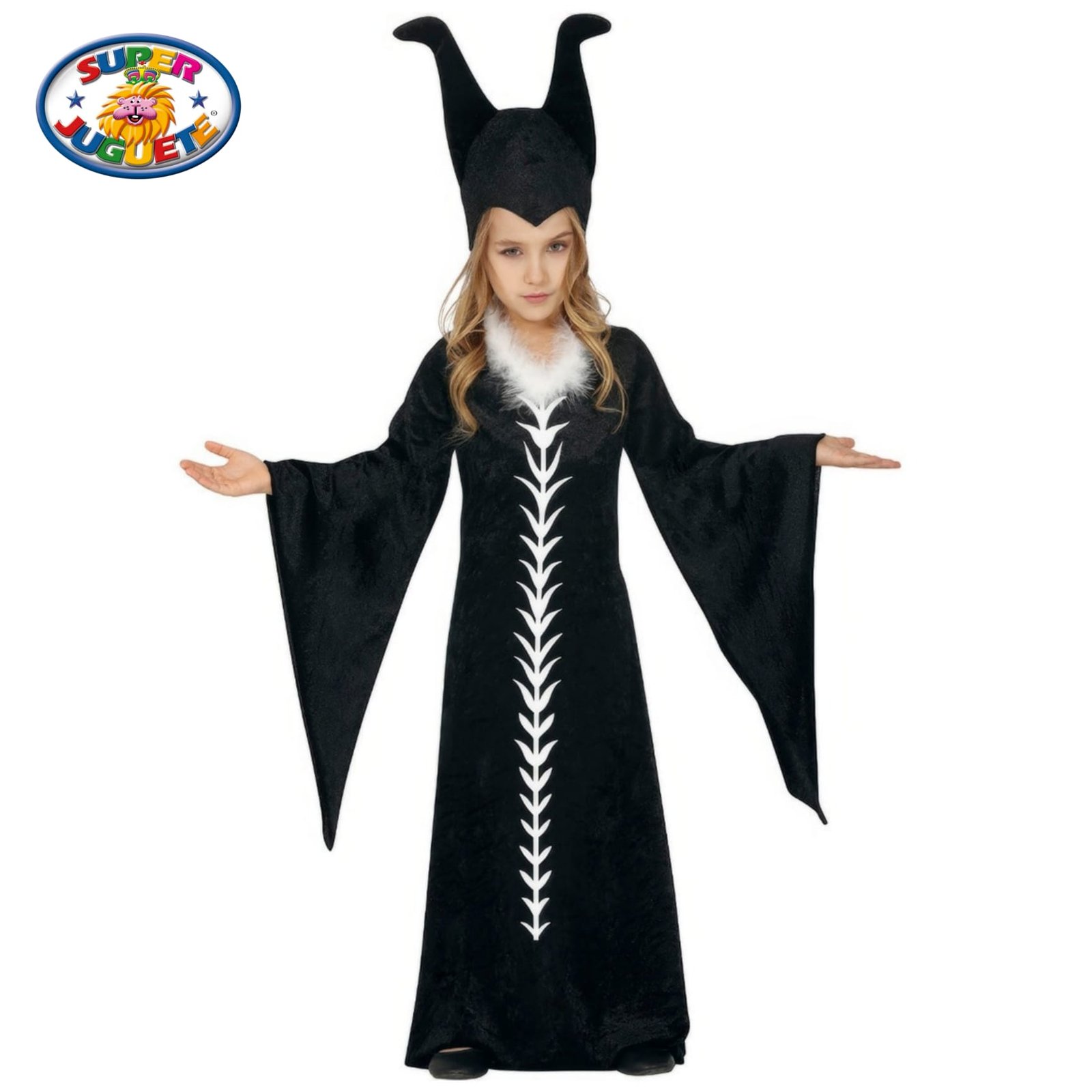 ¡Que empiece el hechizo! Con este Disfraz Reina Oscura Infantil con Cuernos, cualquier peque podrá transformarse en una poderosa reina mágica llena de elegancia, misterio y fantasía 🖤👑. Perfecto para Halloween, fiestas temáticas, obras escolares o juegos de imaginación donde la magia cobra vida ✨🪄.