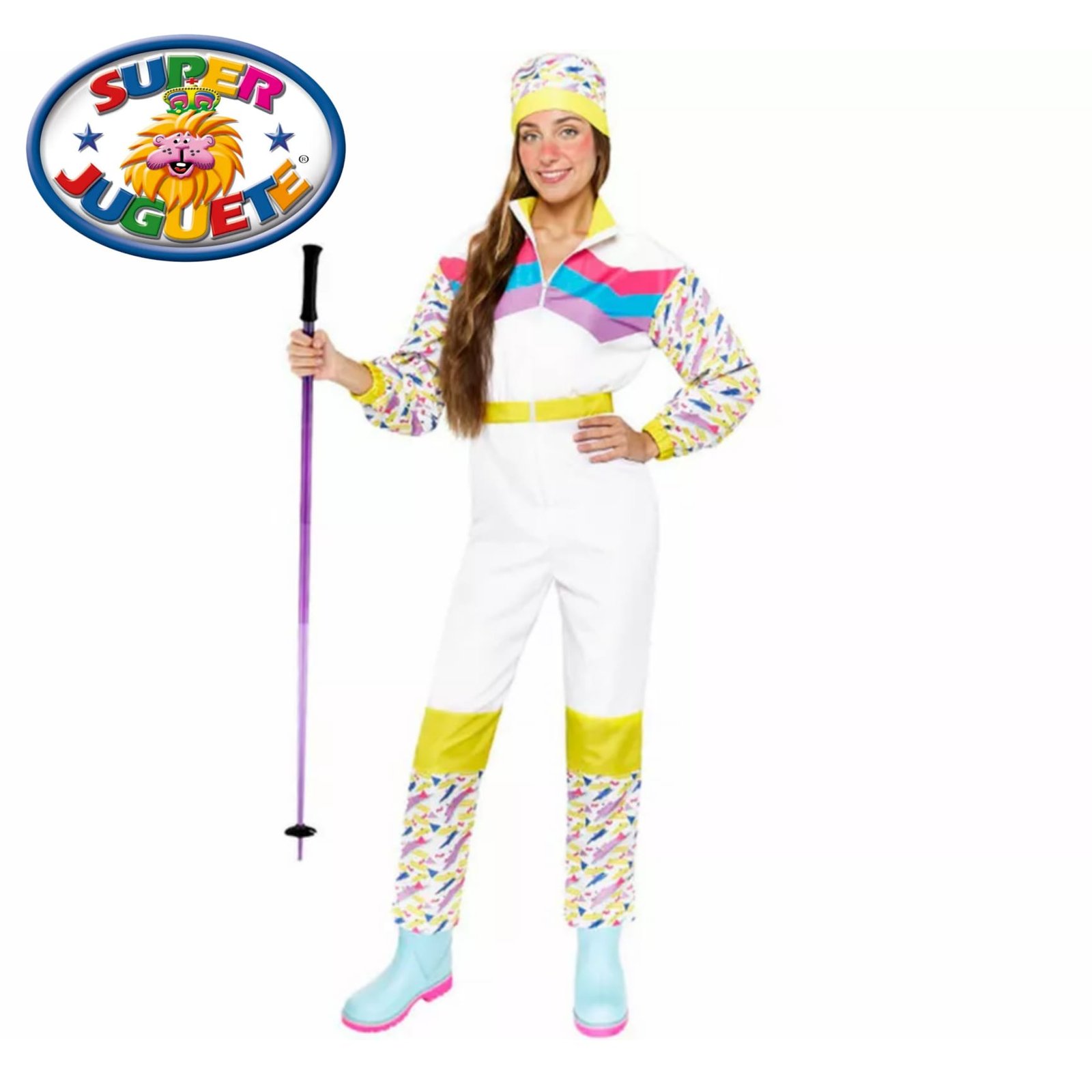 Revive los años 80 con este disfraz retro de esquí multicolor. Incluye mono y gorro. Cómodo, unisex y perfecto para Carnaval, fiestas temáticas y eventos divertidos.