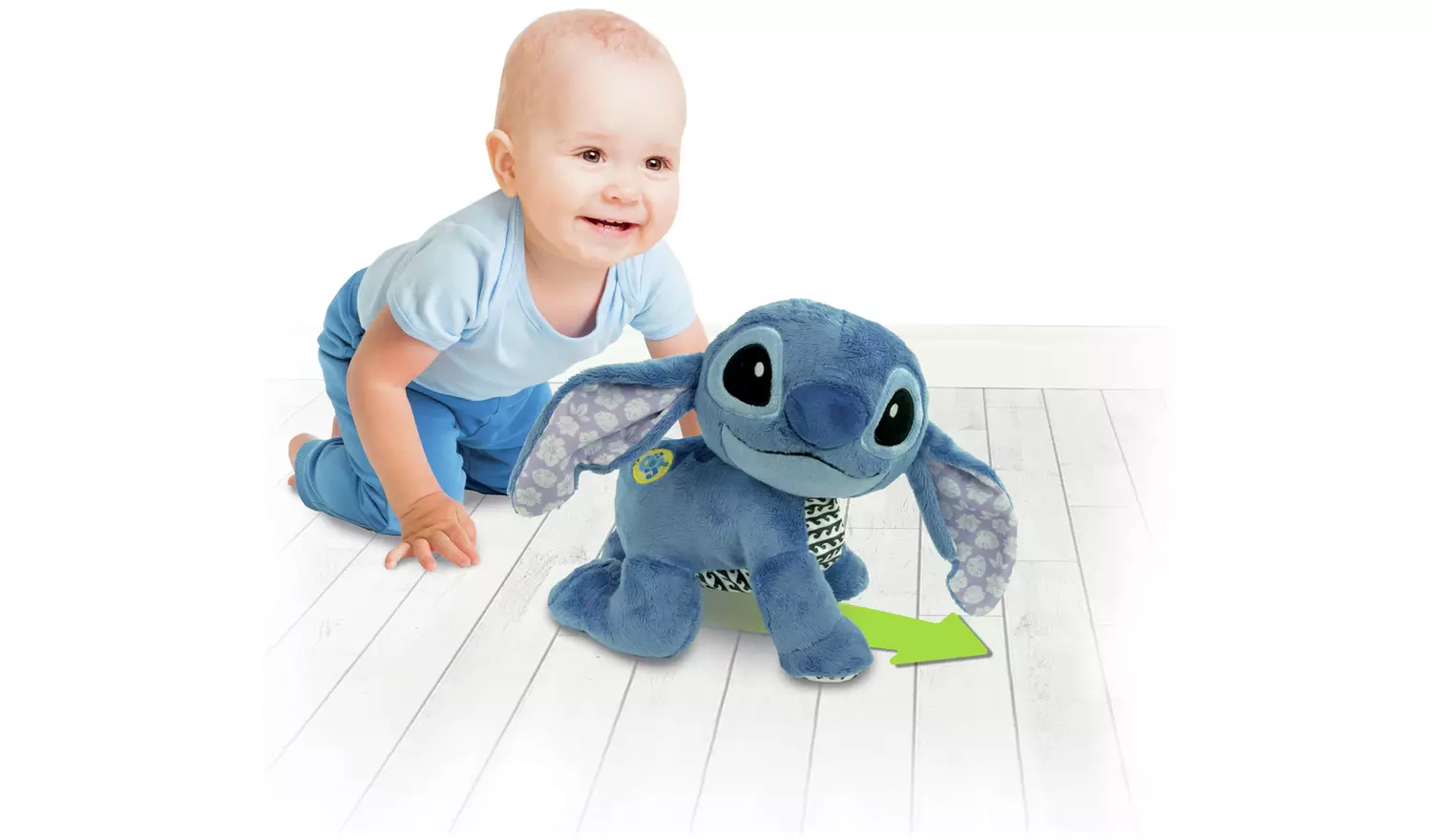 • 🐾 Stitch se mueve solo: gatea e invita al bebé a seguirlo.