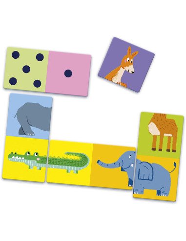 24 fichas de dominó con animales y números 🐯🐘🎲