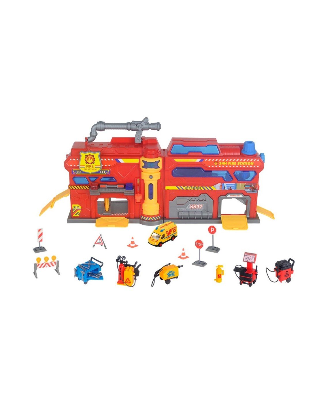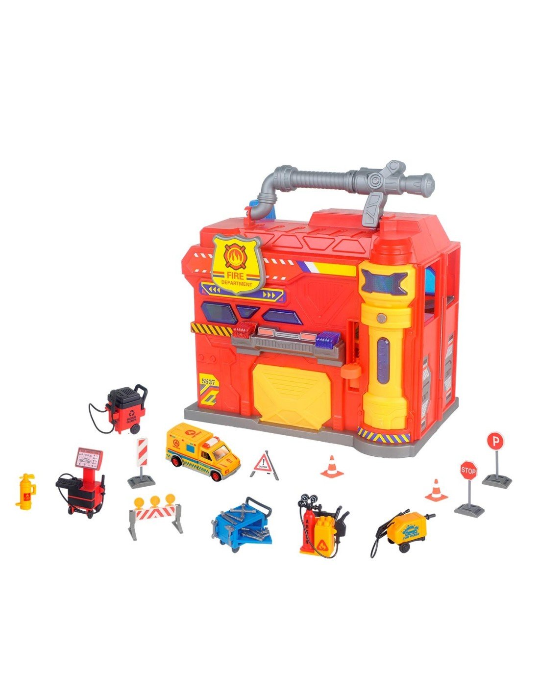 • 🧰 Más de 10 accesorios incluidos: conos, señales, extintores, herramientas, surtidores y más.
