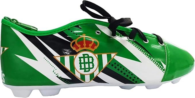 Estuche oficial del Real Betis con diseño de bota de fútbol. Original, práctico y perfecto para material escolar o regalo para fans verdiblancos.