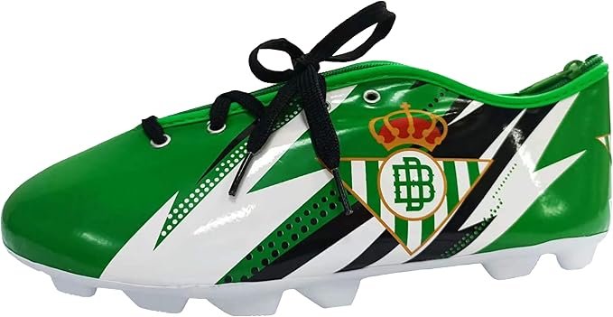 Este estuche con forma de bota de fútbol del Real Betis es tan original como práctico. Inspirado en una bota de tacos, con colores verdiblancos, escudo oficial y cordones decorativos, es perfecto para guardar lápices, bolígrafos, rotuladores o pequeños accesorios 🎒✏️