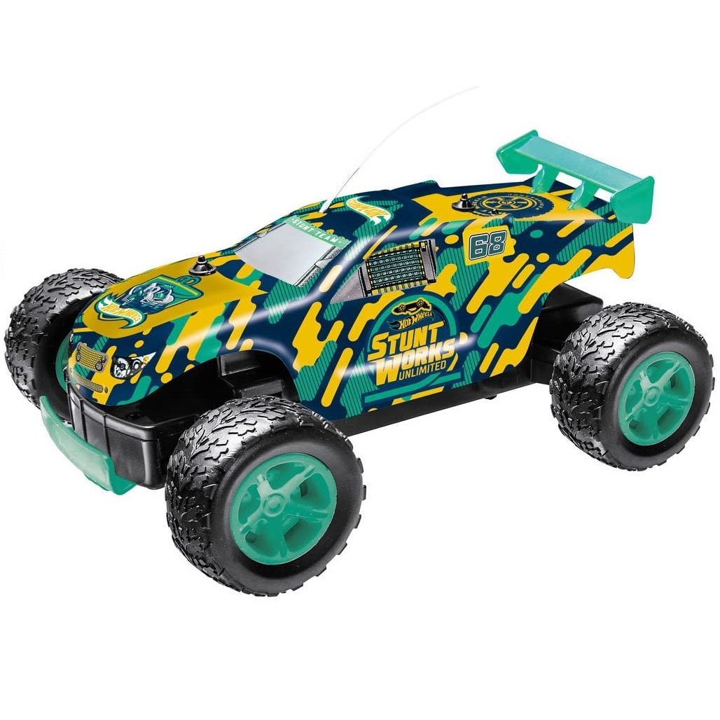 Hot Wheels Radiocontrol 1:24 Rock Monster es un coche teledirigido de 18 cm que alcanza los 8km/ hora en cualquier dirección. Incluye un mando a distancia y su estructura es altamente resistente