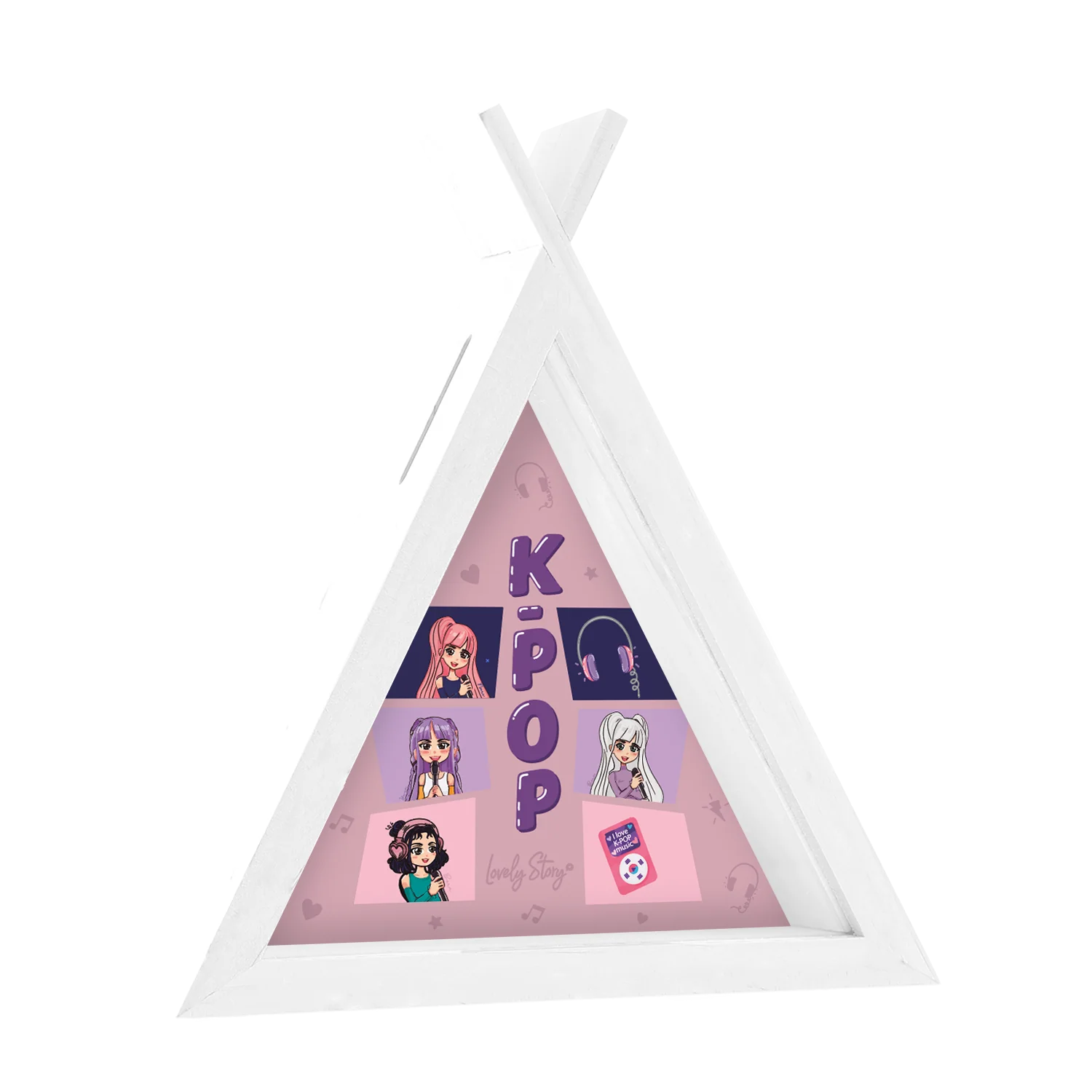 Hucha tipi K-Pop Lovely Story con diseño kawaii y musical. Ideal para fans del K-Pop, decoración de habitación y regalos originales.