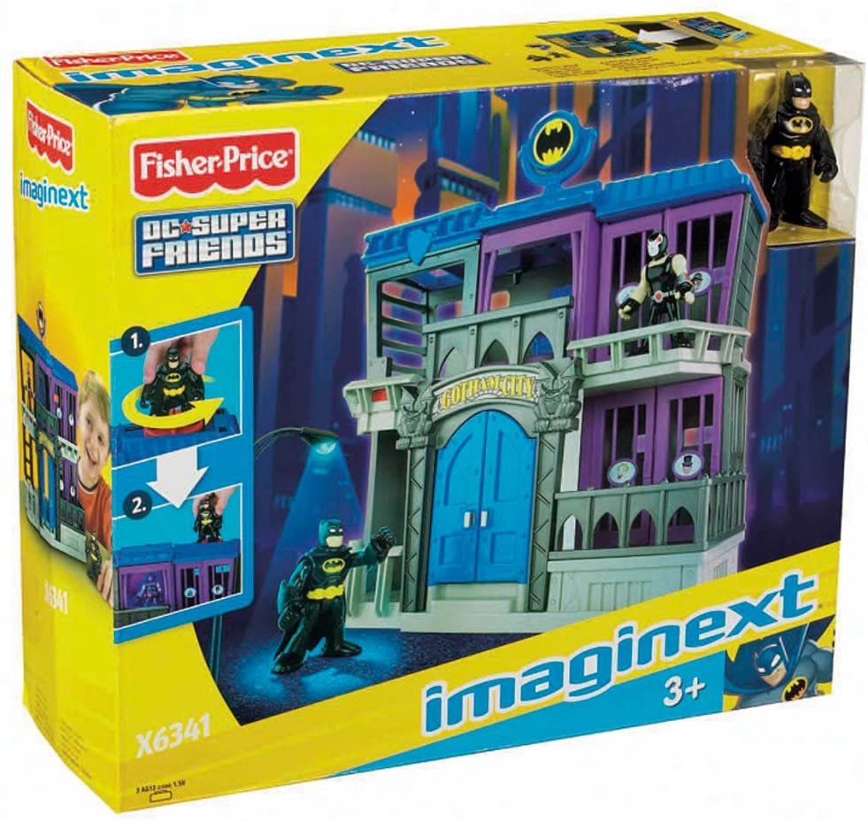 La Cárcel de Gotham de Imaginext presenta a Bane en un asombroso escenario. La cárcel presenta cuatro celdas con la imagen de uno de los villanos de Gotham City. Gracias a sus dos puntos de activación y las numerosas áreas de juego, este conjunto de juego permite revivir toda la emoción de las aventuras de Batman. Cuando todos los villanos están entre rejas, el primer disco activa una luz negra que hace brillar la pintura luminosa de la figura de Bane, cuyos ojos y venas brillan como si tuviera superpoderes. Entonces, Bane puede escapar de su celda y abrir las demás celdas usando el disco localizado en la parte superior del conjunto de juego. ¡Todos los villanos huyen por la puerta principal y siembran el caos en Gotham City! La Bat-señal sirve para llamar a Batman, que atrapa a todos los criminales y los devuelve a la cárcel. El conjunto de juego incluye 5 celdas, entre ellas la celda especial de Bane, y una figura de Bane.