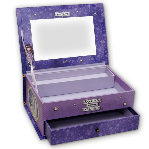 Nuevo Joyero de Gorjuss Santoro: espejo rectangular seguro para niños, 1 cajón y 3 compartimentos superiores