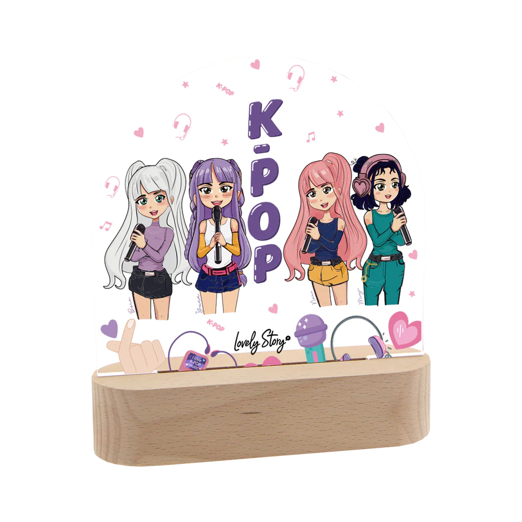 Lámpara de noche K-Pop Lovely Story – Lámpara LED decorativa con base de madera y panel acrílico