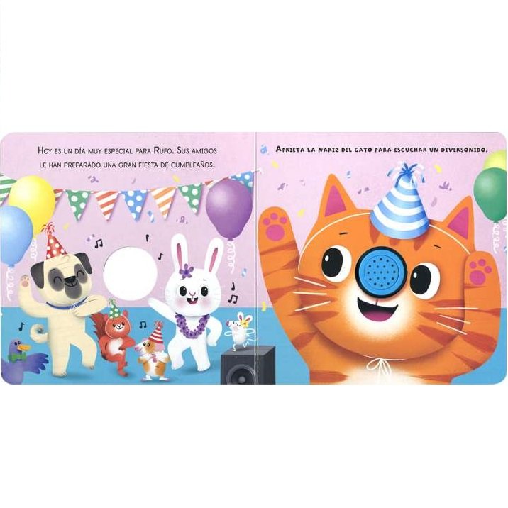 Aprieta la nariz del perrito y de sus amigos ¡y escucha un sonido diferente cada vez! Un libro de cartón ideal para los niños más pequeños, que no se cansarán de apretar la nariz de los animales.