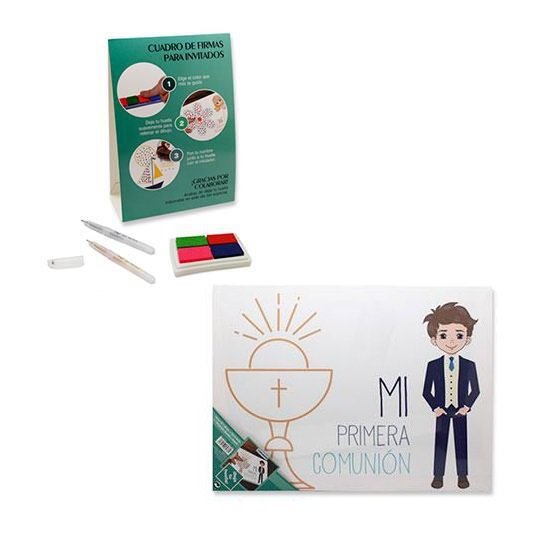 Cuadro de firmas para invitados, con tampón cuatro colores y 2 pinceles. Medidas: 40×30 cm.
