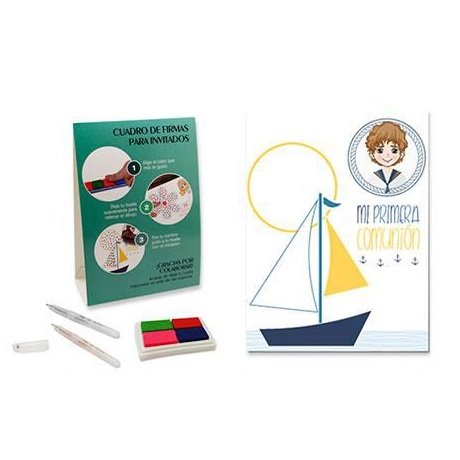 Cuadro de firmas para invitados, con tampón cuatro colores y 2 pinceles. Medidas: 40×30 cm.