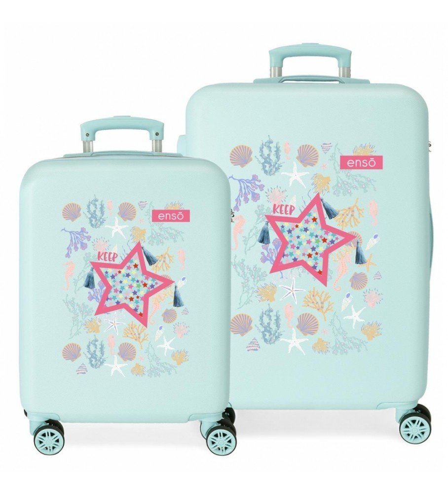 La colección escolar de Enso «Keep The Oceans Clean» no puede ser más bonita. Junto con un atractivo diseño en azul claro y rosa, las Mochilas , maletas y demás accesorios que componen esta colección, nos muestran un bonito mensaje para los más pequeños. Cuidar del fondo del mar. El diseño lleva una preciosa estrella frontal que hace esta colección escolar sea realmente irresistible. No dudes en llevarte estas maletas de cabina o mediana siempre en tus viajes, por su comodidad gracias a sus cuatro ruedas y sus compartimentos interiores, te permitirán disfrutar junto con tus amigos, de todas esas aventuras que algún día recordaréis.