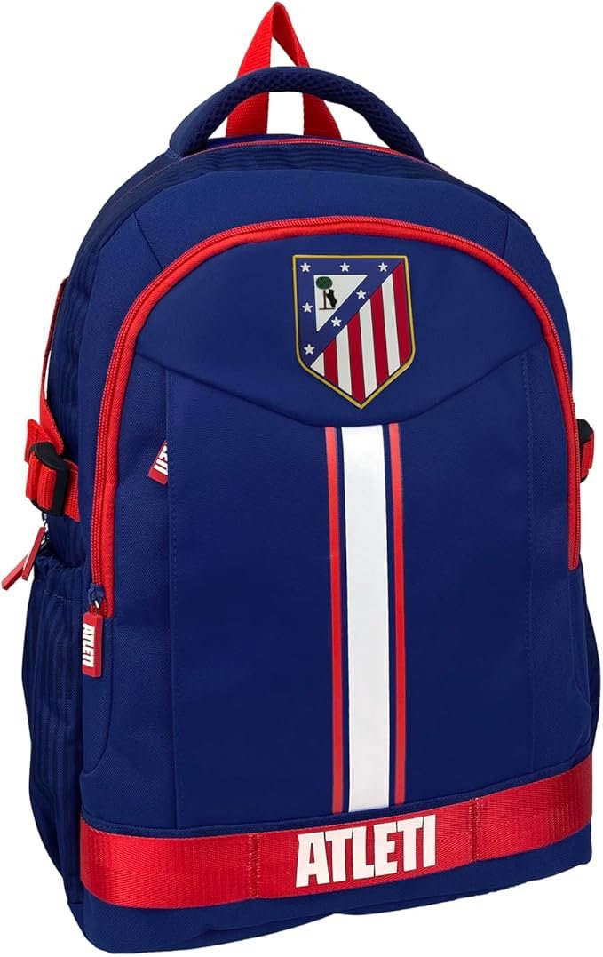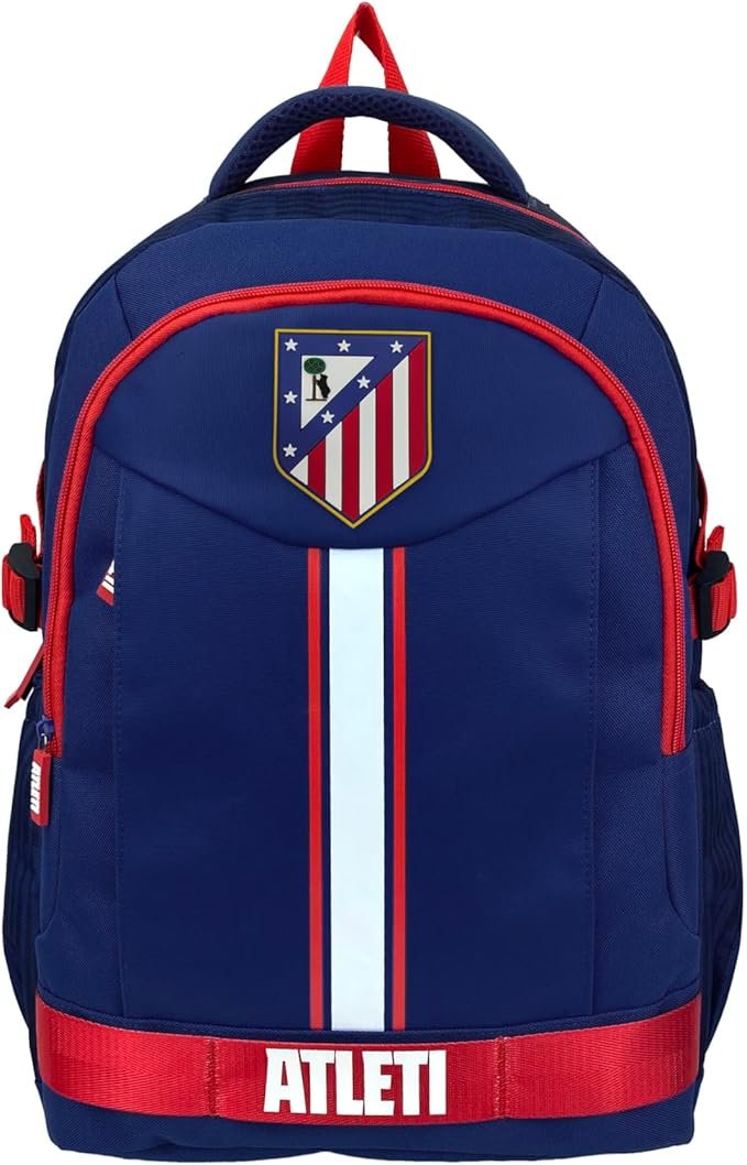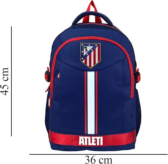 Mochila oficial del Atlético de Madrid de 45 cm. Resistente, cómoda y con respaldo acolchado. Ideal para colegio o uso diario.