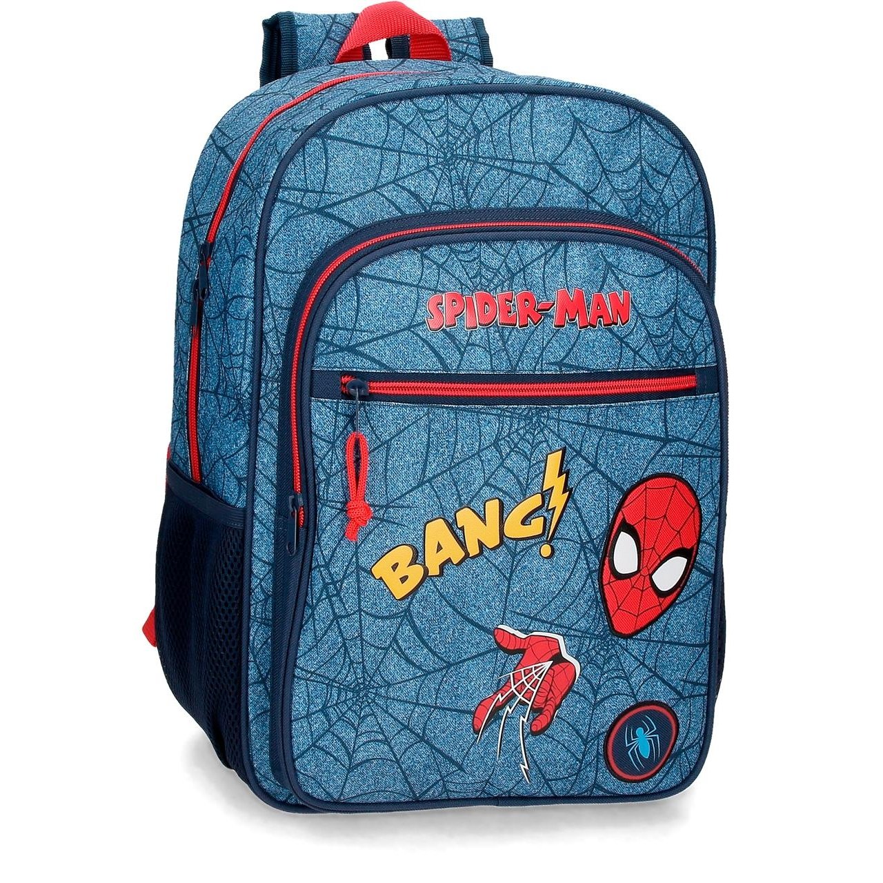 Esta línea de mochilas, mochilas con carro, estuches, neceseres, riñonera…. tan denim de Spiderman, te encantará llevar al cole, en todos tus viajes ó salidas de fin de semana. La tela de araña de Spiderman sobre el color denim, tu personaje favorito y su característica mano forman parte de tus mochilas preferidas y te acompañarán allá donde vayas, ya que además tienen el tamaño ideal segun tu edad y necesidad. Así que, elige a Spiderman como tu mejor compañero de aventuras.