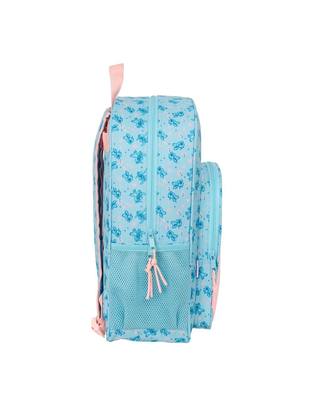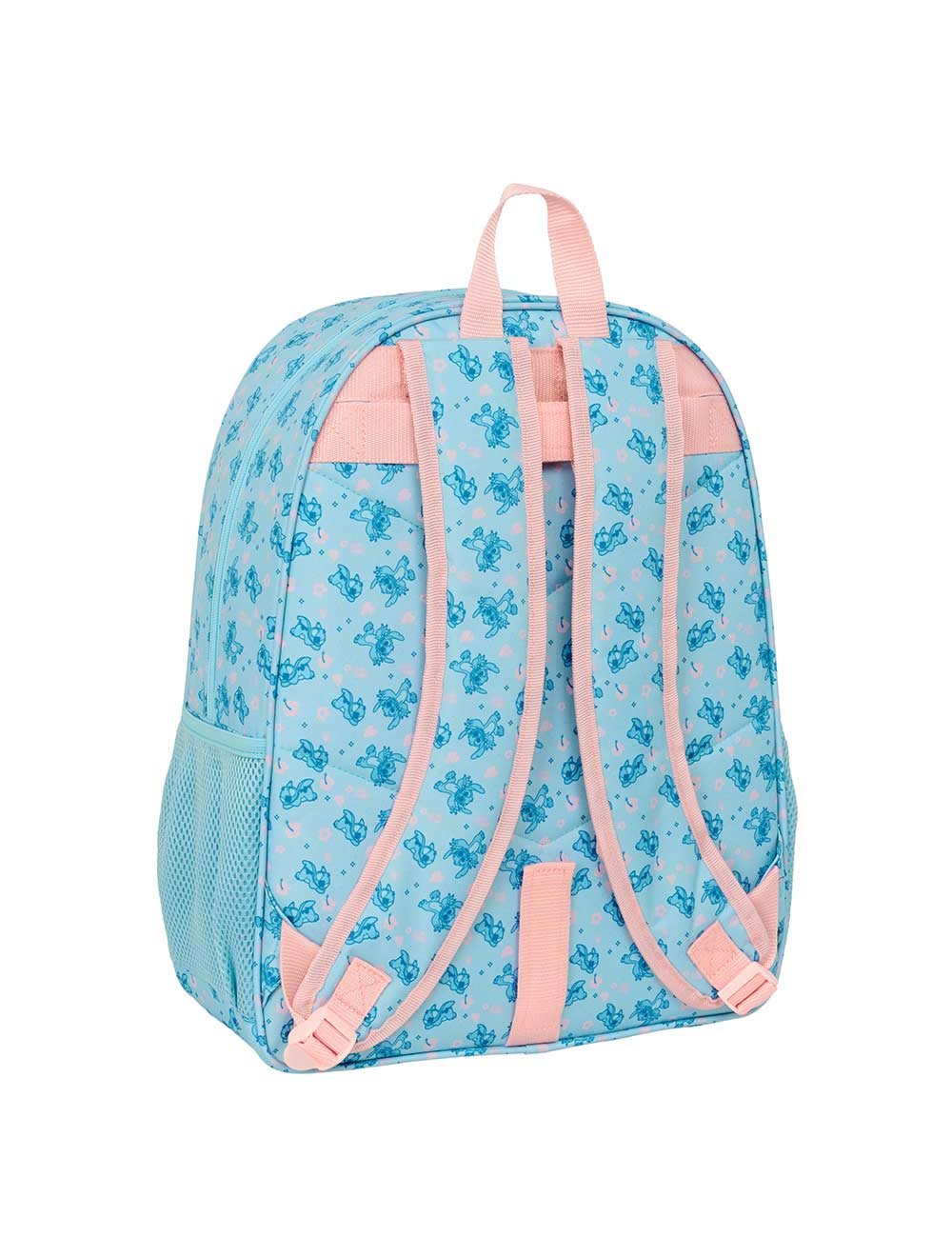 Mochila escolar Stitch Disney adaptable a carro con bolsillo frontal y laterales de malla. Mochila infantil resistente ideal para el colegio. 🎒💙