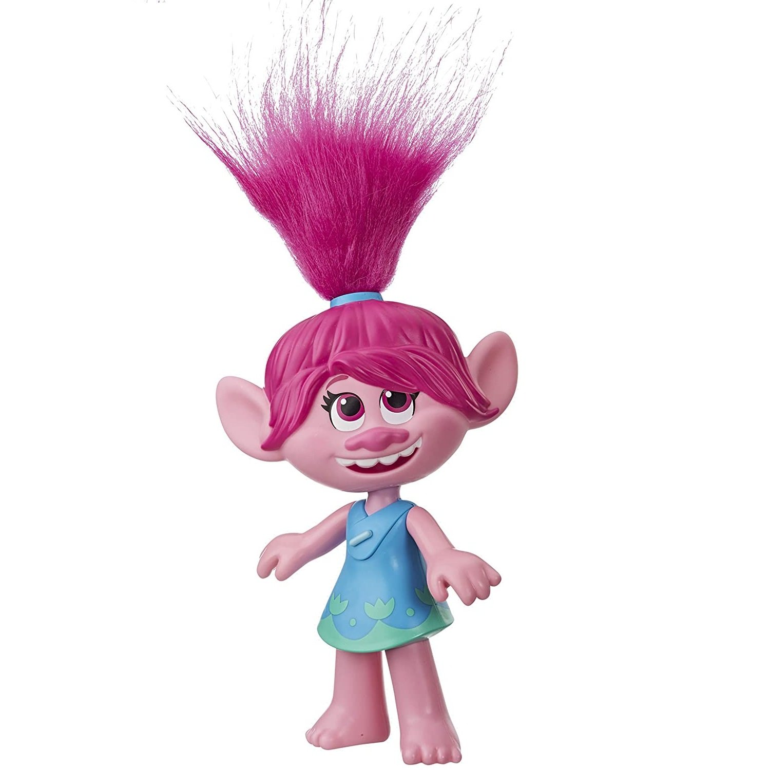 - Esta muñeca musical presenta a Poppy que canta la canción «Los Trolls querrán disfrutar», tal como se escucha en la película Trolls: Gira mundial