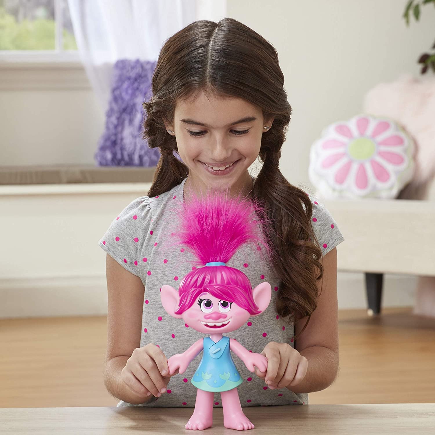 - Esta muñeca Poppy superestrella tiene brazos y cabeza móviles para que los niños puedan exhibirla haciendo poses y es el regalo perfecto para niñas a partir de 4 años o para cualquier fan de DreamWorks Trolls