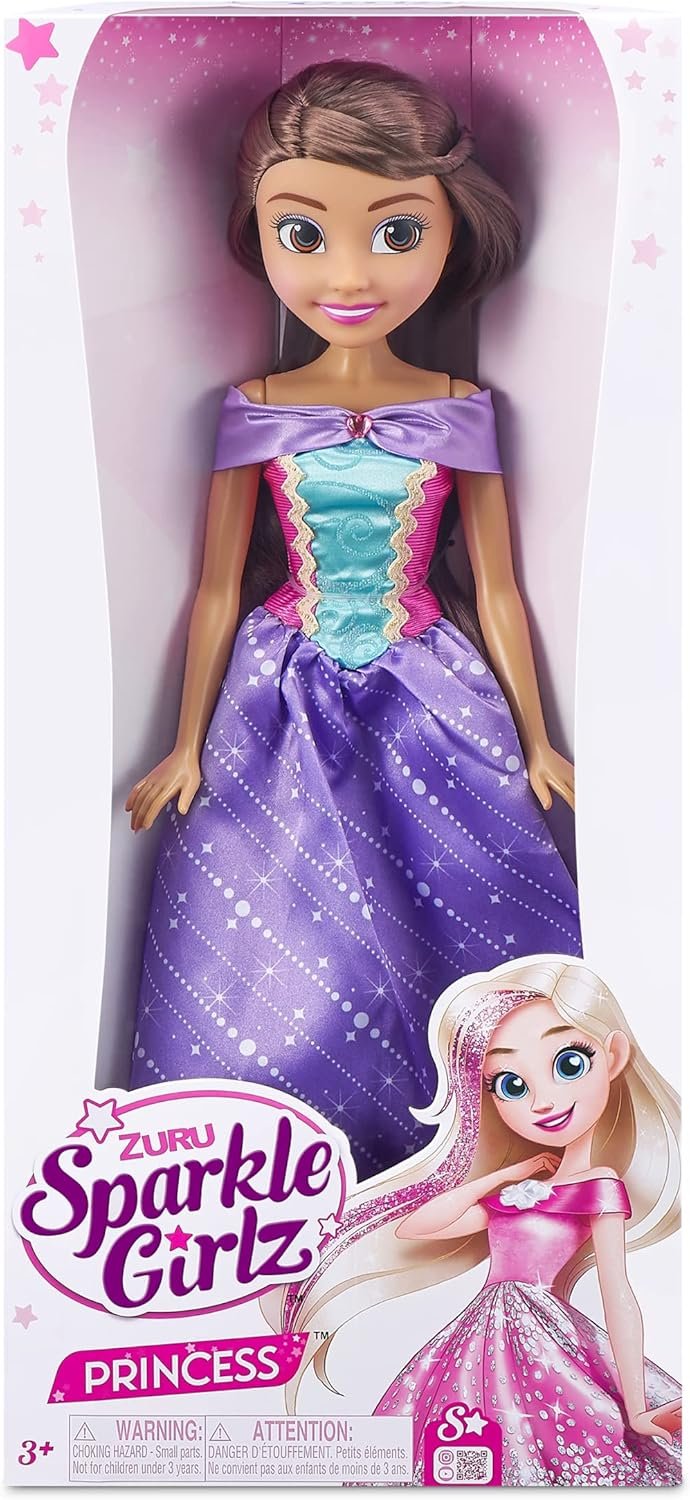 La muñeca ZURU Sparkle Girlz Princess es la compañera perfecta para aventuras llenas de imaginación, fantasía y diversión. Con su precioso vestido morado lleno de destellos ✨, su largo cabello peinable y su estilo encantador, esta princesa está lista para acompañar a peques de 3 años en adelante en historias mágicas sin fin. 👑💫